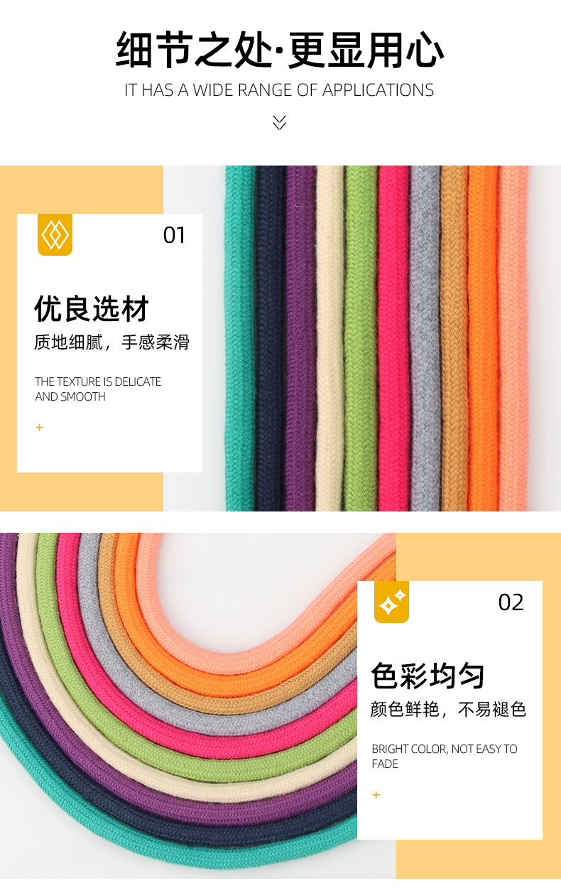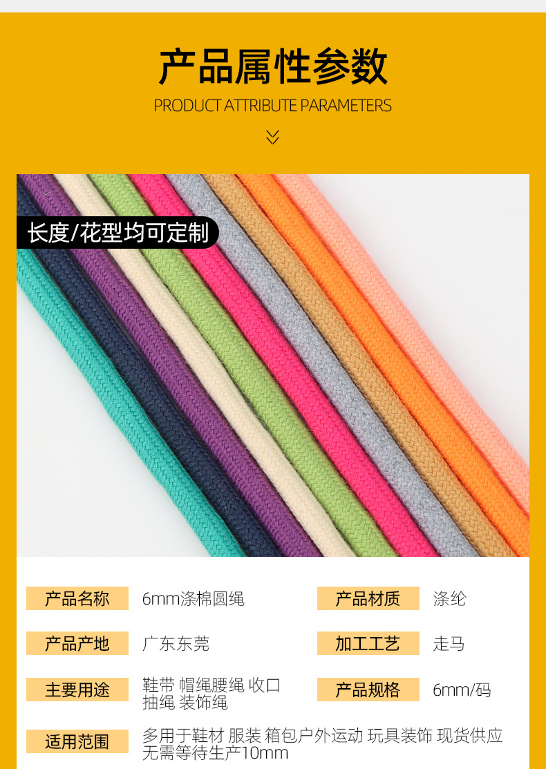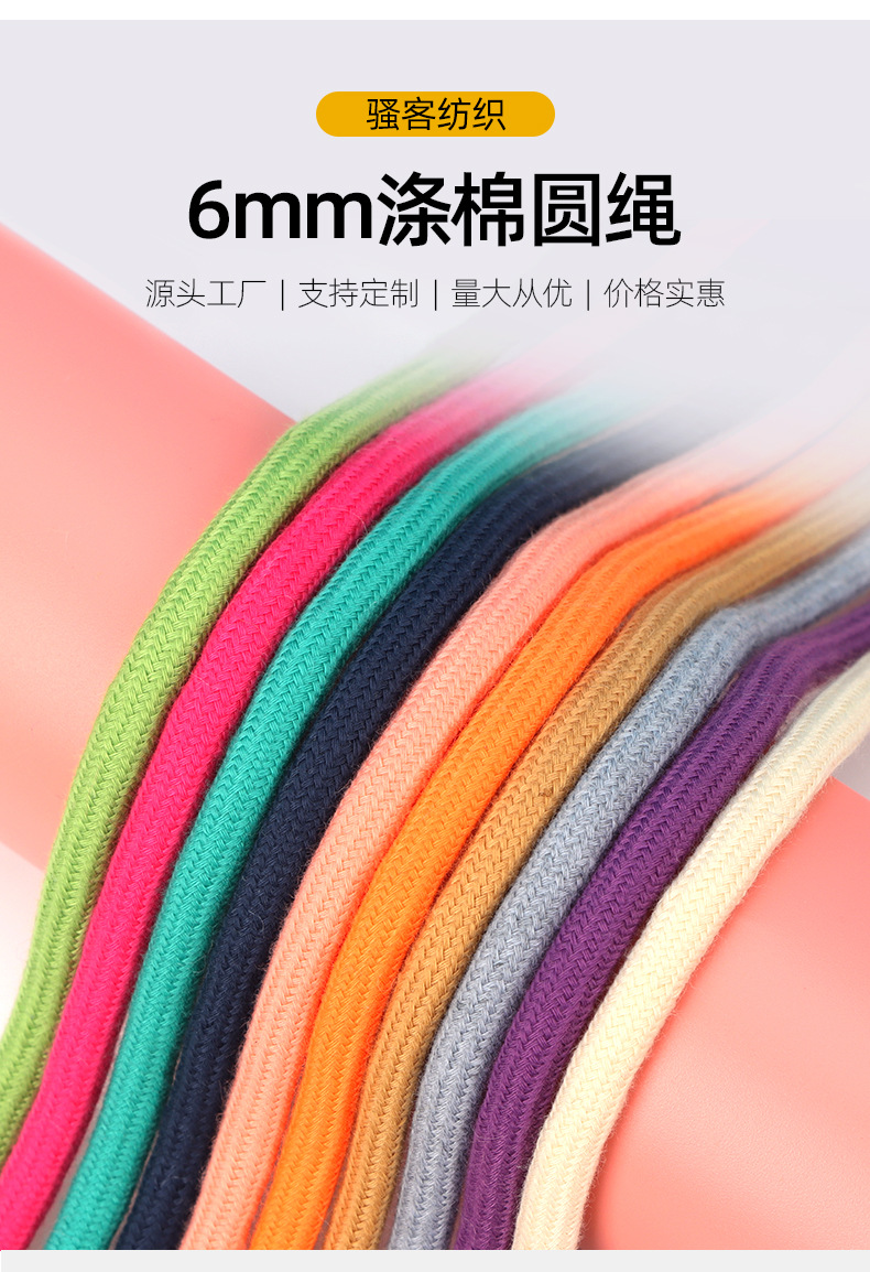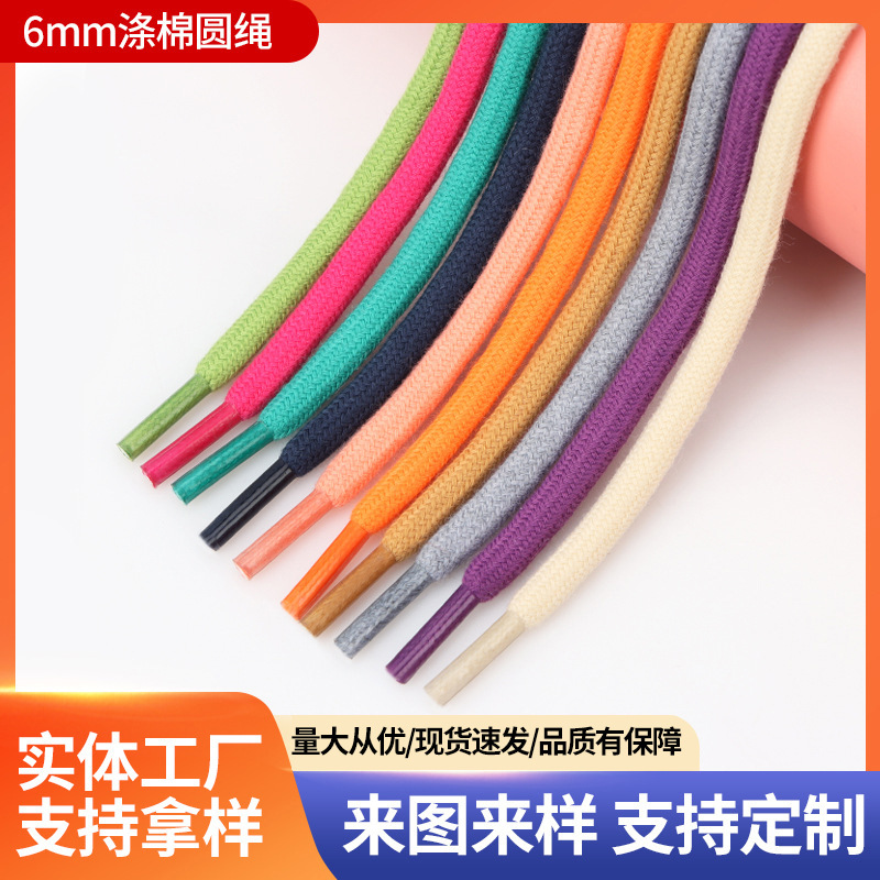 6mm 폴리에스터 면 혼방 원형 끈, 면 끈, 의류 모자 끈, 캐주얼 바지 허리 조임끈, 면 신발끈, 동관 폴리에스터 면 혼방 원형 끈스토어 가기