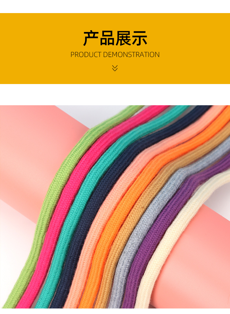 6mm 폴리에스터 면 혼방 원형 끈, 면 끈, 의류 모자 끈, 캐주얼 바지 허리 조임끈, 면 신발끈, 동관 폴리에스터 면 혼방 원형 끈