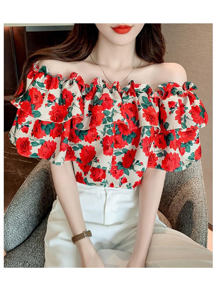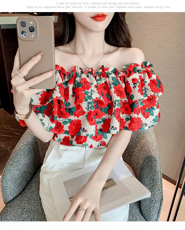 여성의 새로운 디자인 센스 틈새 스위트 쉬폰 벨리 커버 쉬폰 셔츠 센스 탑