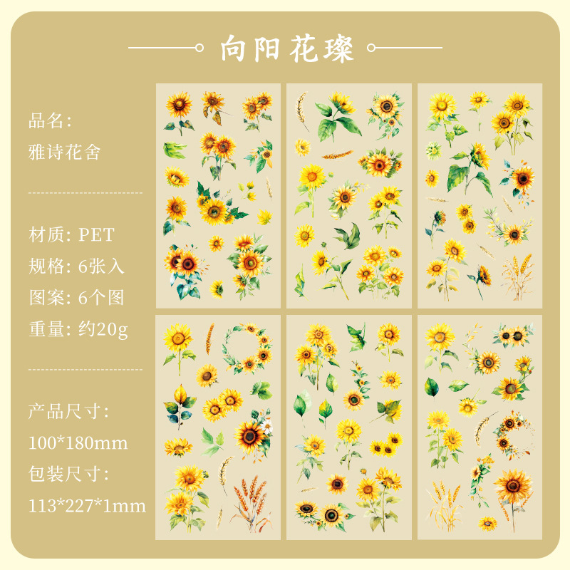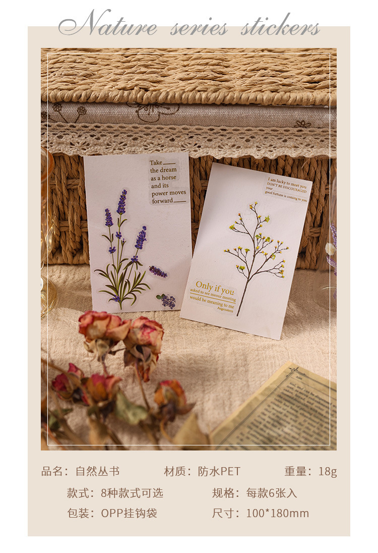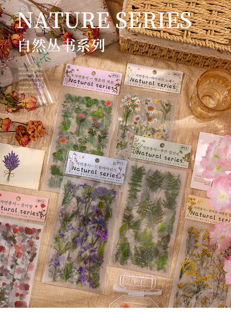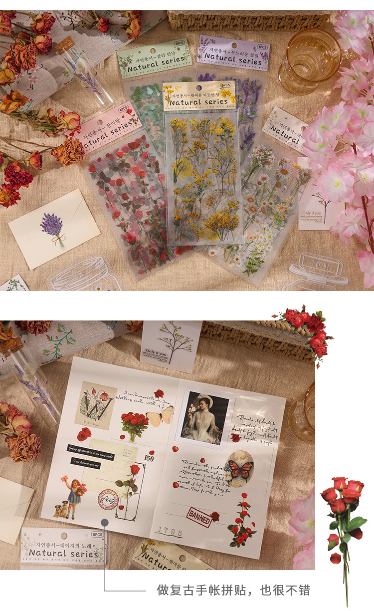Yuezhen 자연 시리즈 핸드북 스티커 가방 pvc 식물 꽃 복고풍 재료 종이 어린이 핸드북 스티커스토어 가기