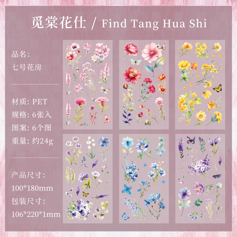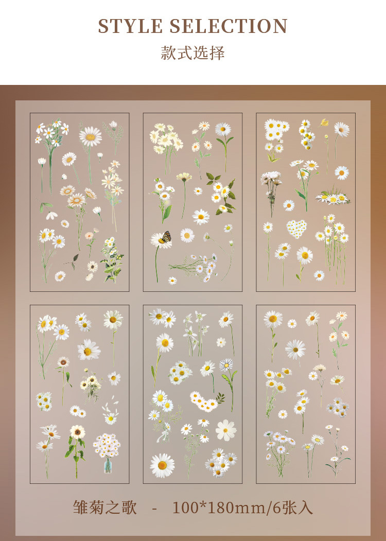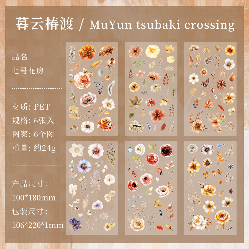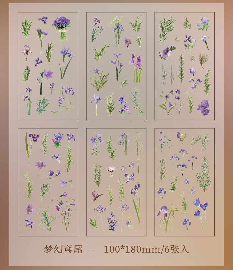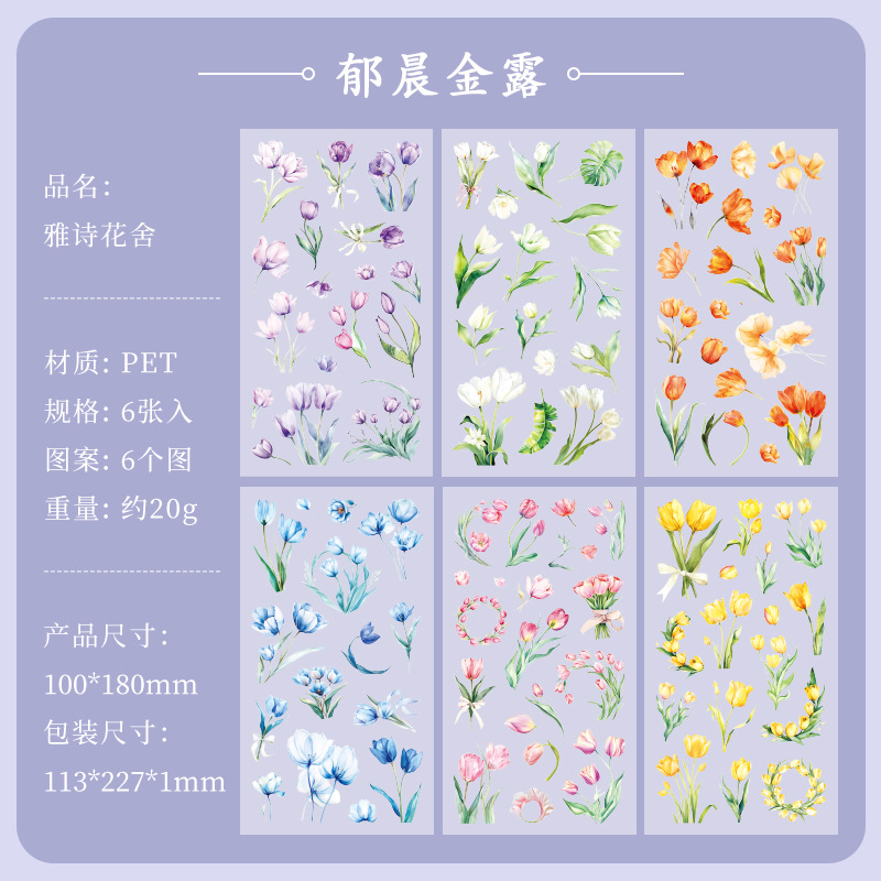 Yuezhen 자연 시리즈 핸드북 스티커 가방 pvc 식물 꽃 복고풍 재료 종이 어린이 핸드북 스티커스토어 가기