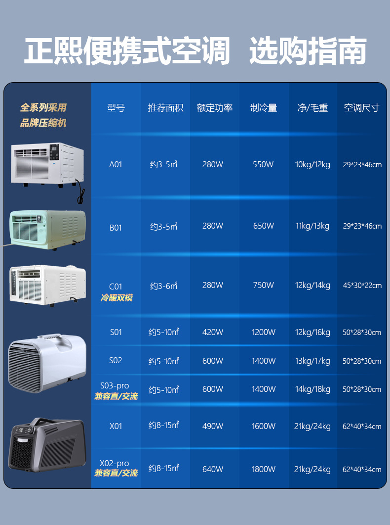 • S03 프로 DC/AC 휴대용 에어컨