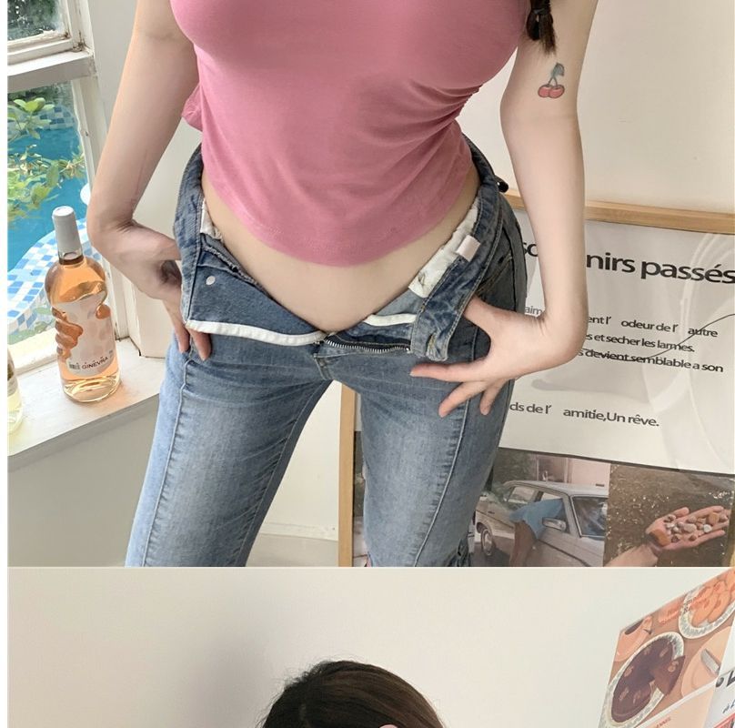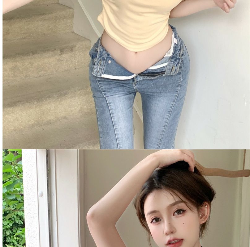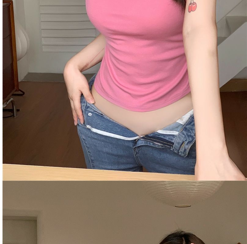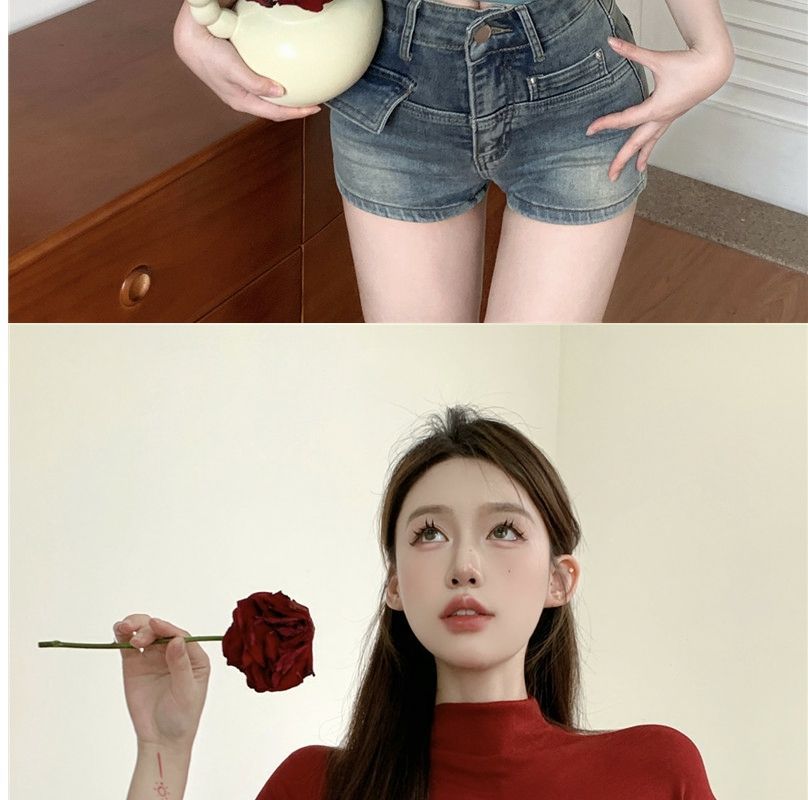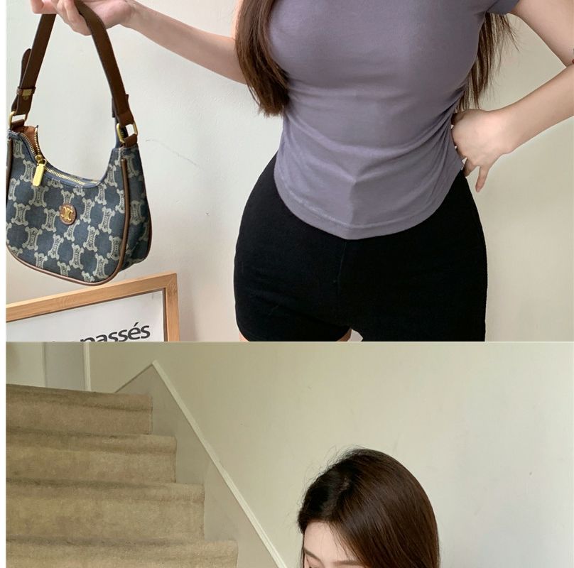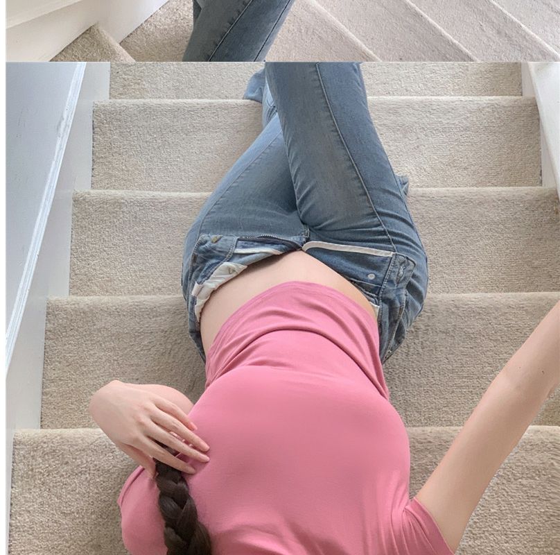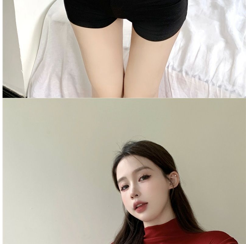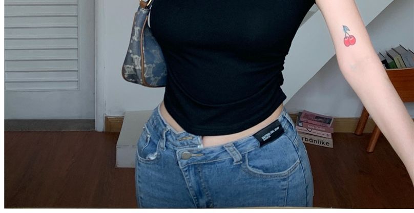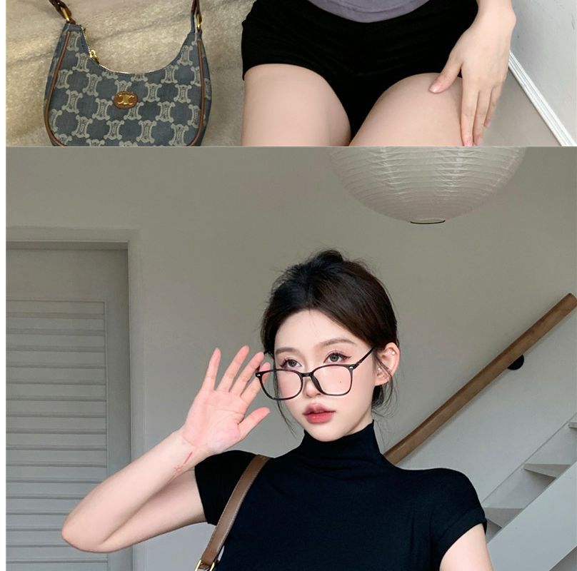 2023 여름 새로운 섹시한 내부 타이트 슬림베이스 셔츠 탑 여성용 디자인 센스 하프 하이 넥 반팔 티셔츠스토어 가기