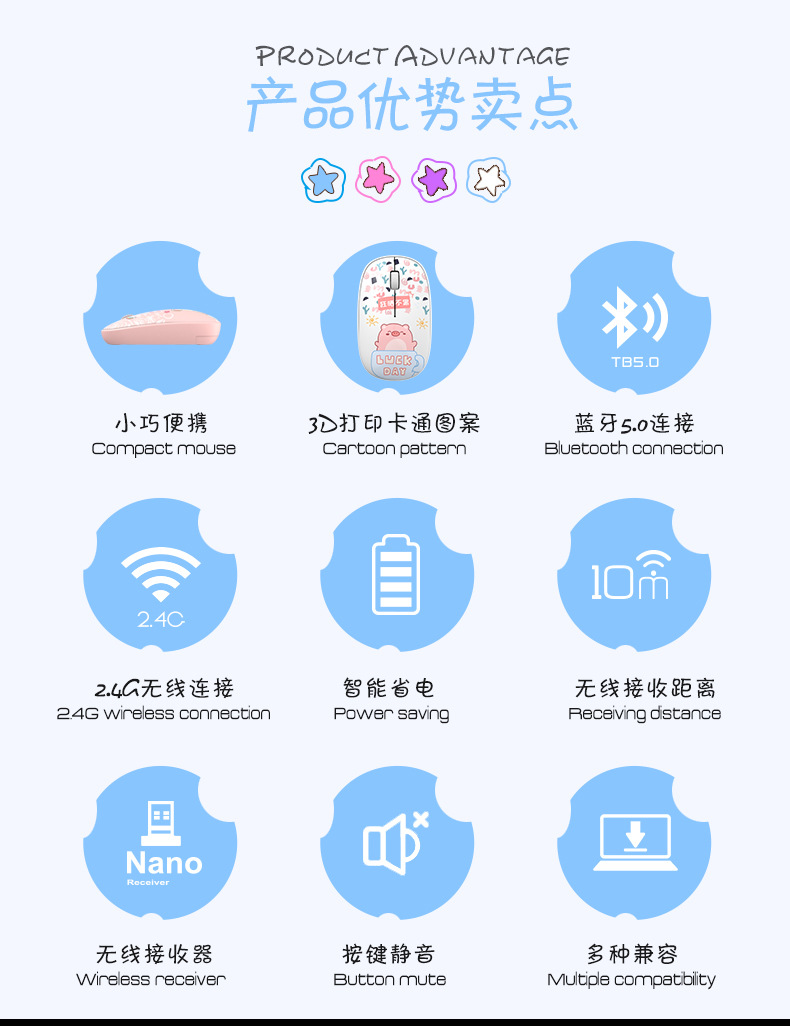 2.4G兼容系统:电脑带有USB接口皆可使用