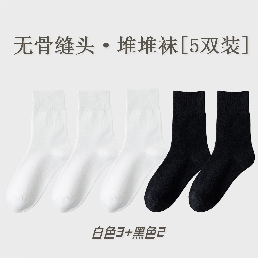 양말 여성용 종아리 중간 양말, 사계절용 얇은 냄새 방지 면 소재 본딩 없는 양말, 봄, 가을용 흑백 산후 양말, 파일 양말스토어 가기