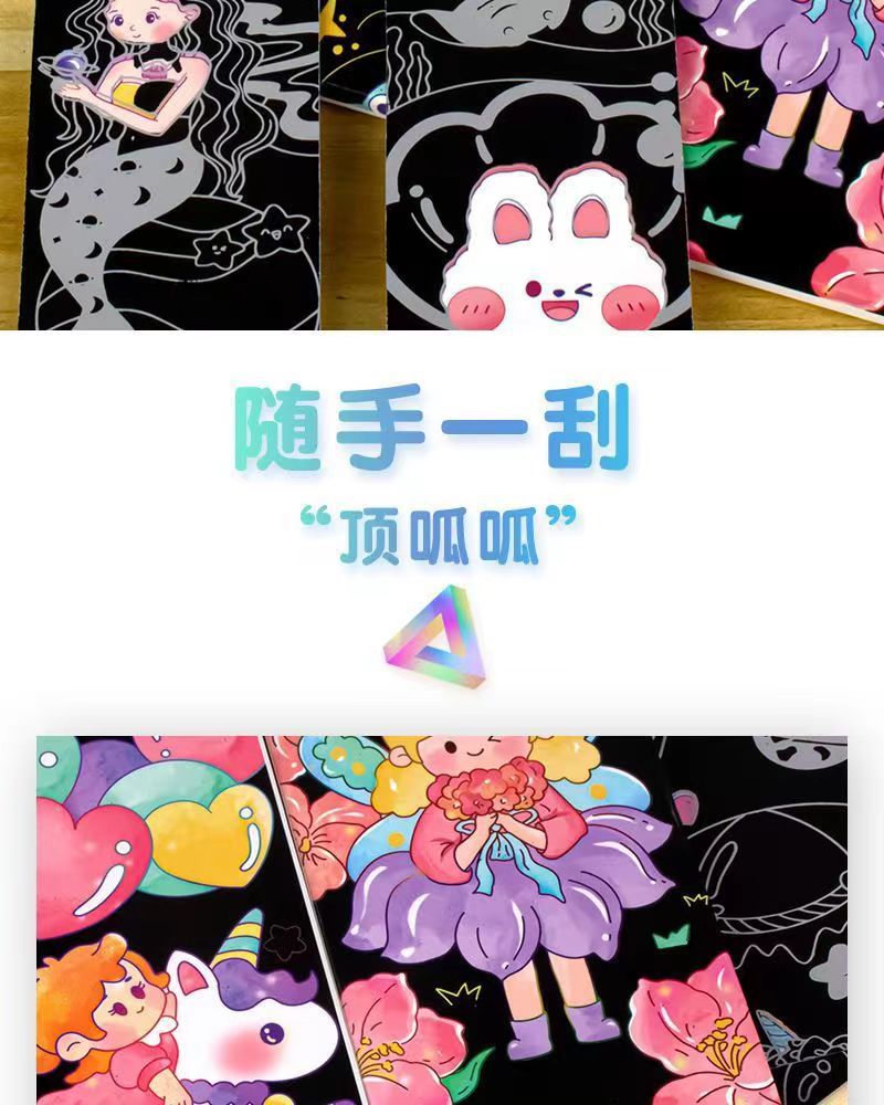 새로운 어린이 반짝 스크래치 노트 다채로운 왁스 소녀 DIY 수제 색칠 장난감 반짝 스크래치