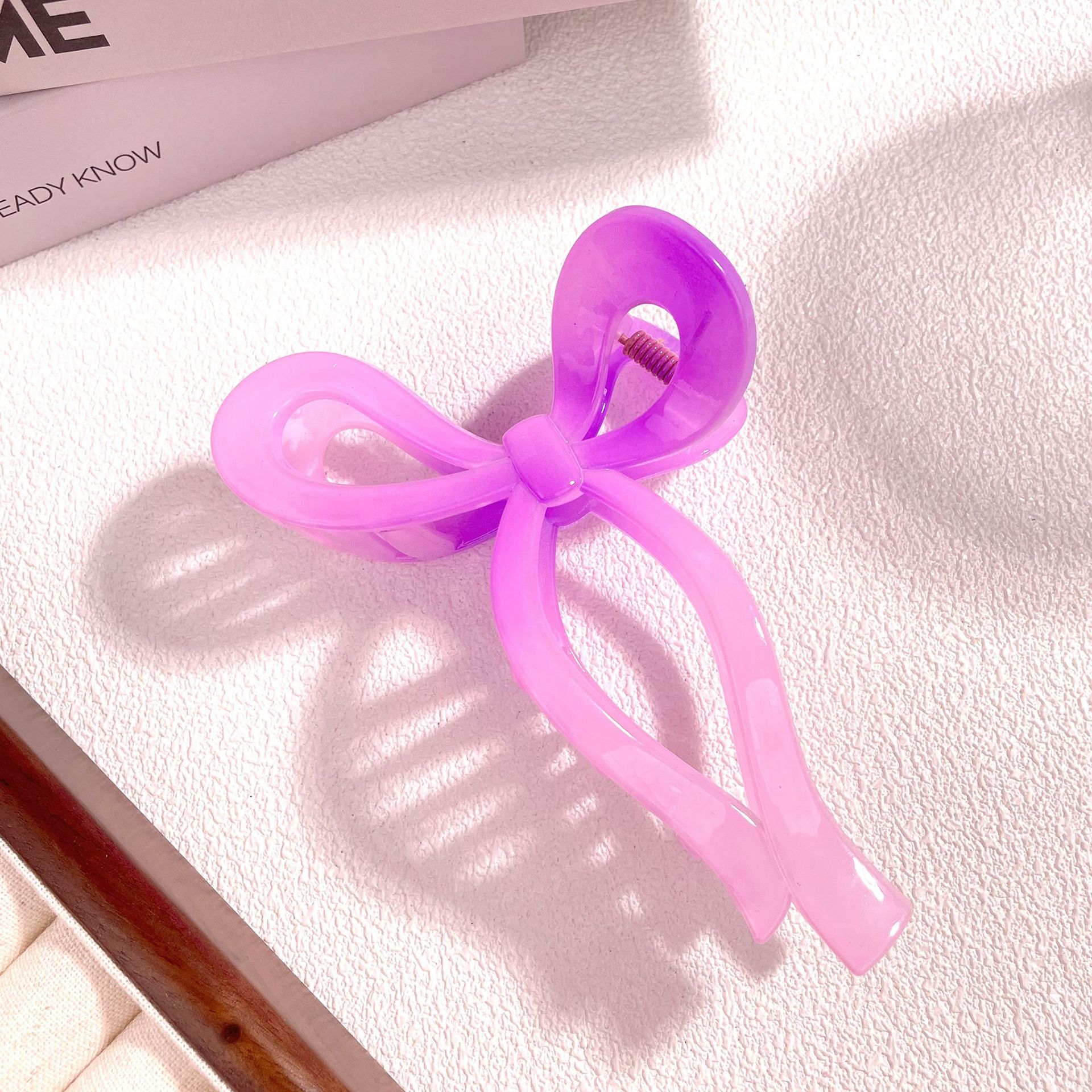 • 밝은 기름 핑크 보라색 나비 넥타이 상어 클립 (11cm)