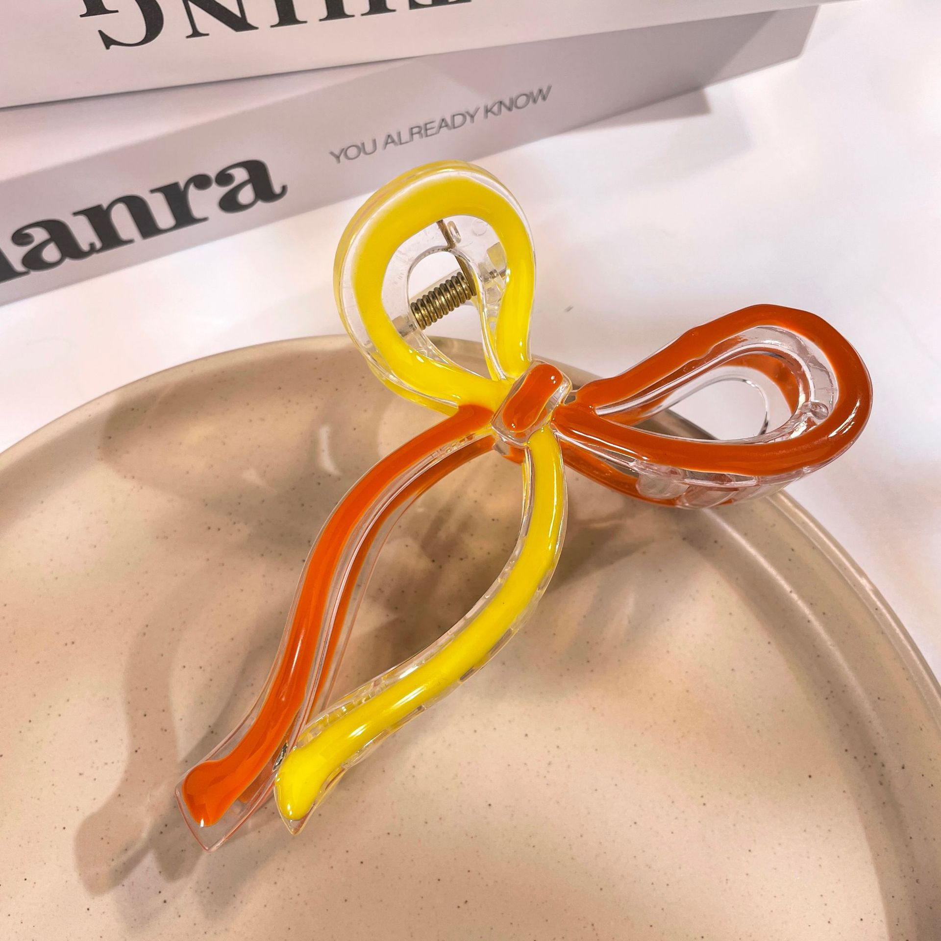 • 밝은 오일 노란색 오렌지 나비 넥타이 상어 클립 (11cm)
