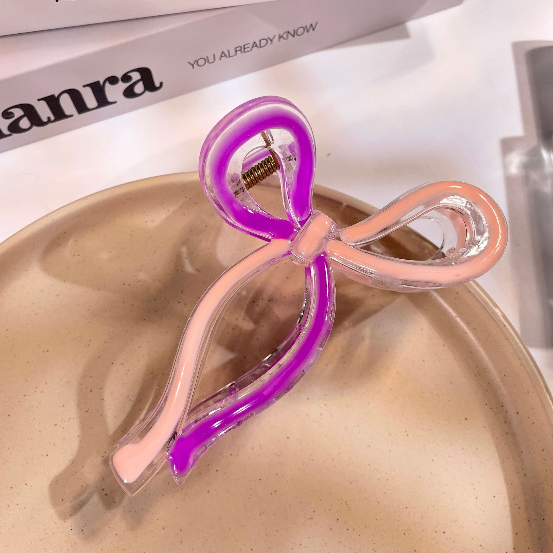 • 밝은 기름 핑크 보라색 나비 넥타이 상어 클립 (13cm)