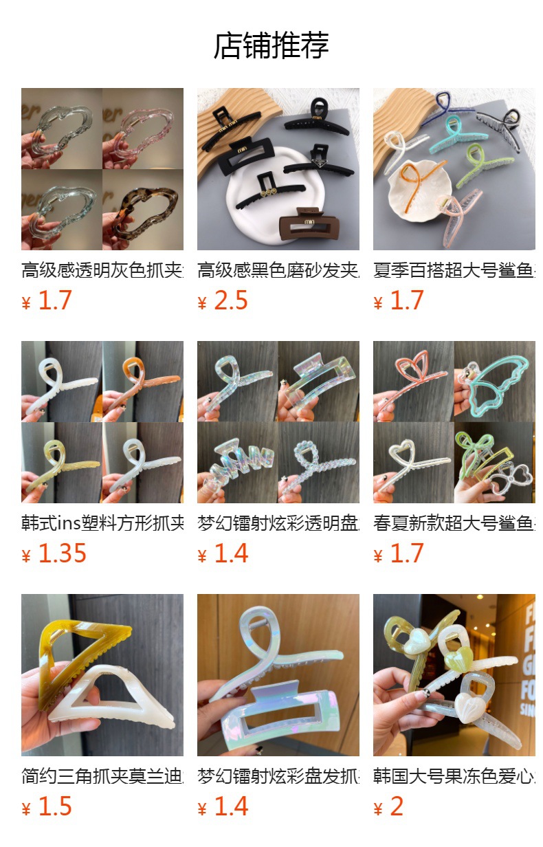 소녀 심장 연령 감소 컬러 인은 머리 빛의 머리핀 여성 등을 잡아 고급 고급 고급 상어 클립 헤어 액세서리 제조 업체 도매스토어 가기