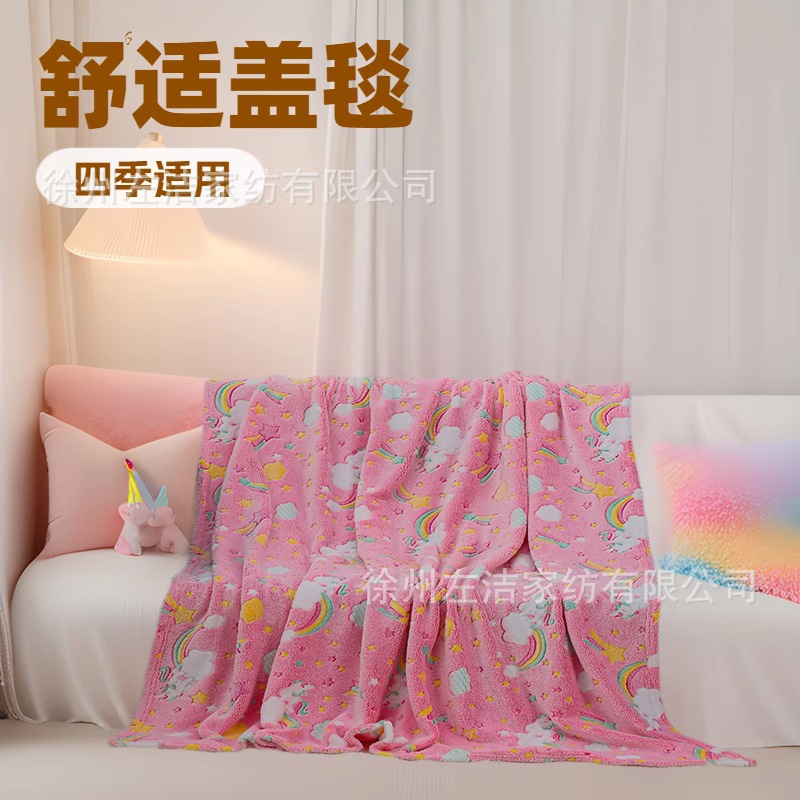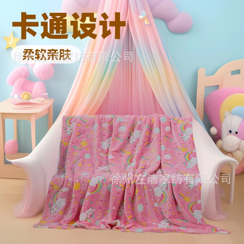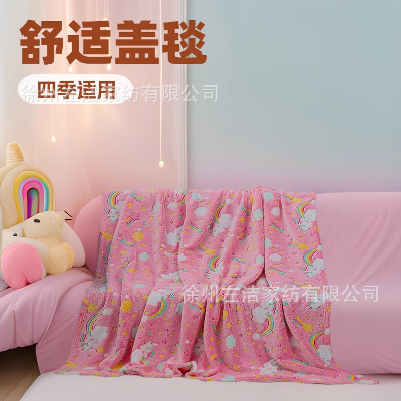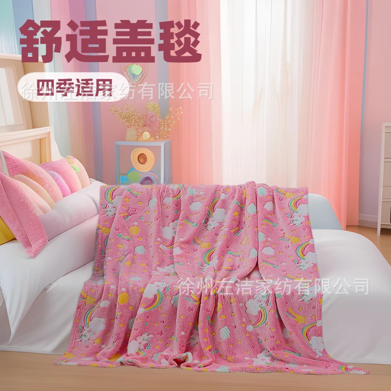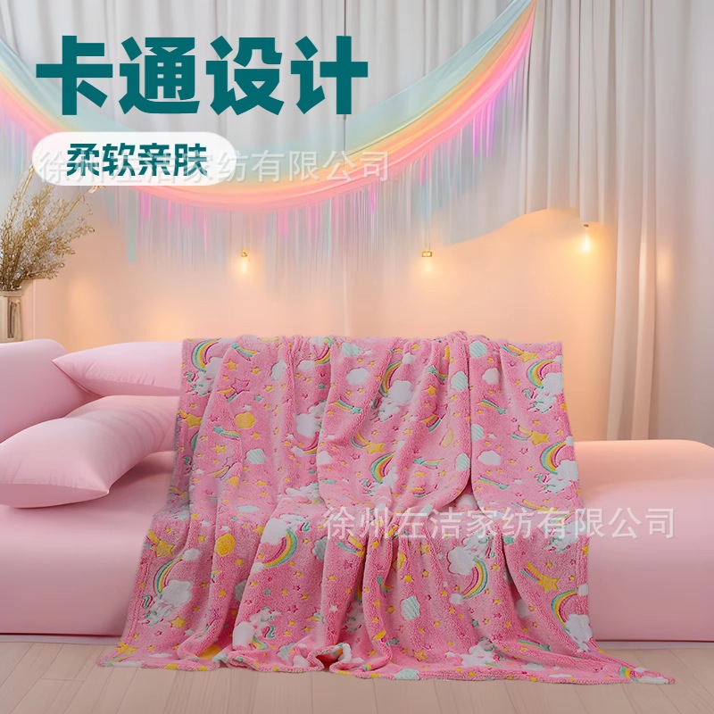 핑크 무지개 구름 빛나는 담요 더블 사이즈 반짝 플란넬 빛나는 담요 울 침대 담요 소파 낮잠 담요