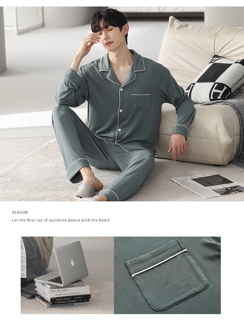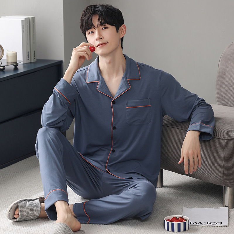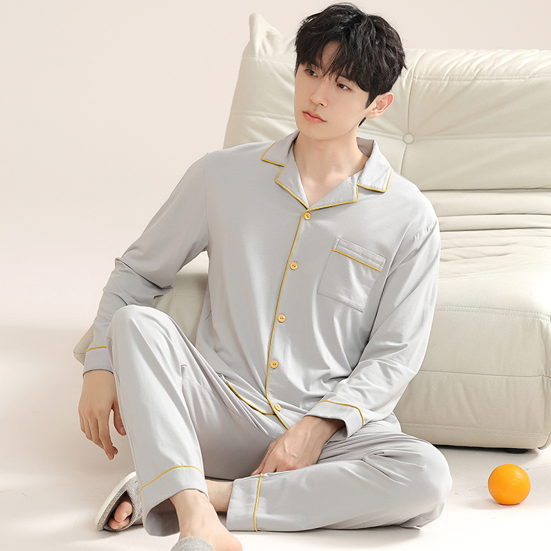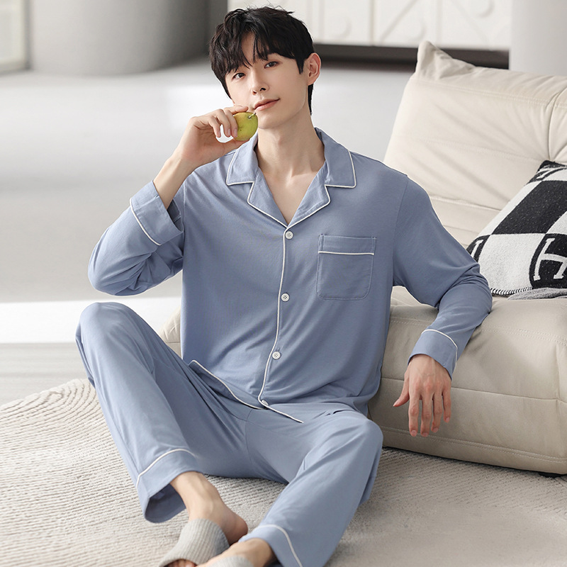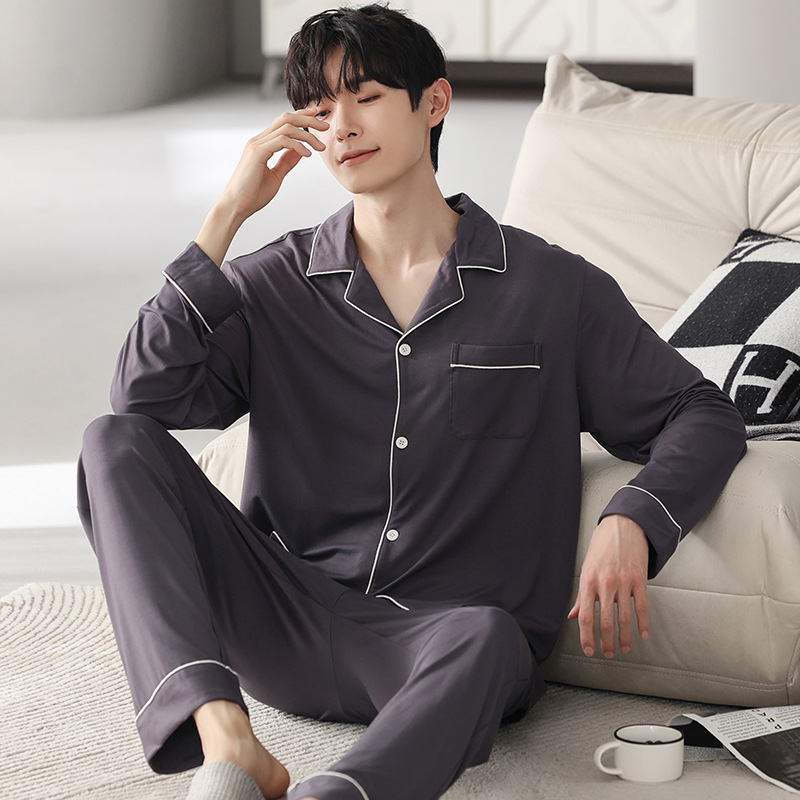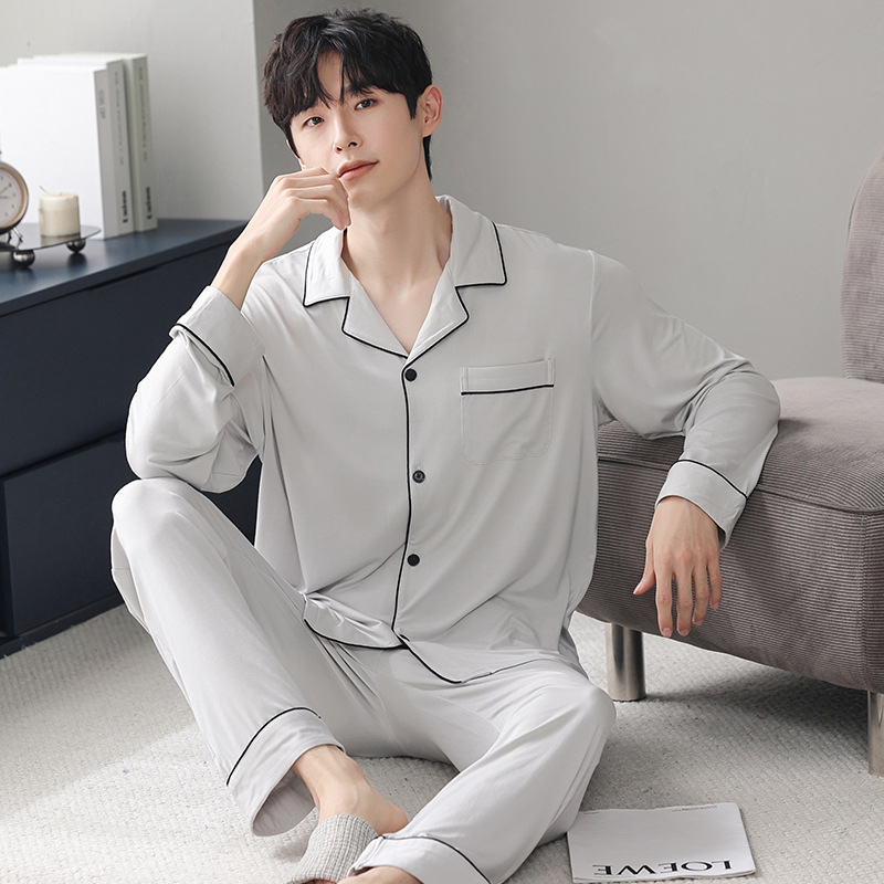 남성 청소년 모달 잠옷 봄과 가을 새로운 긴팔 심플 가디건 홈웨어 패션 슈트는 밖에서 착용 가능