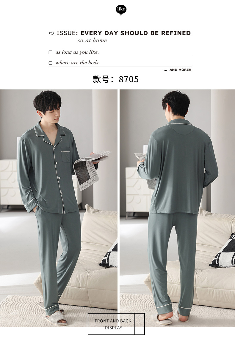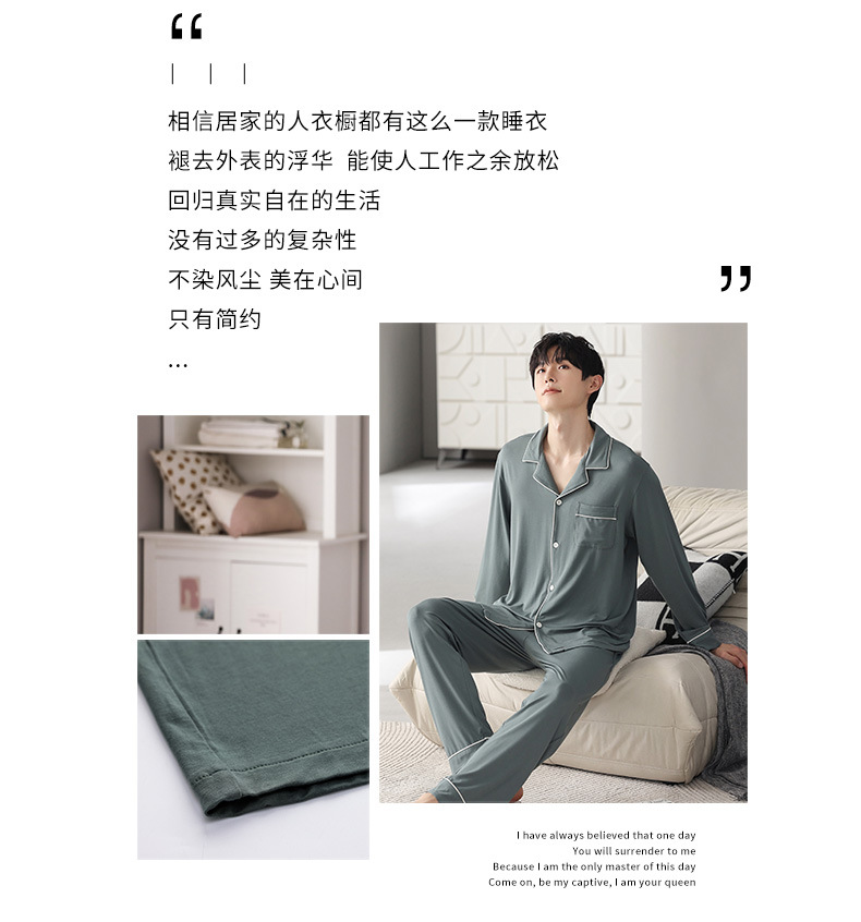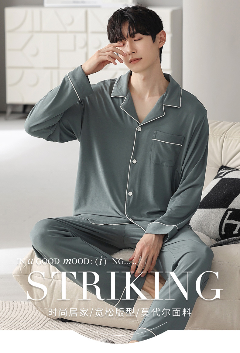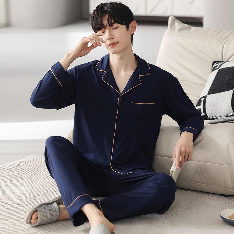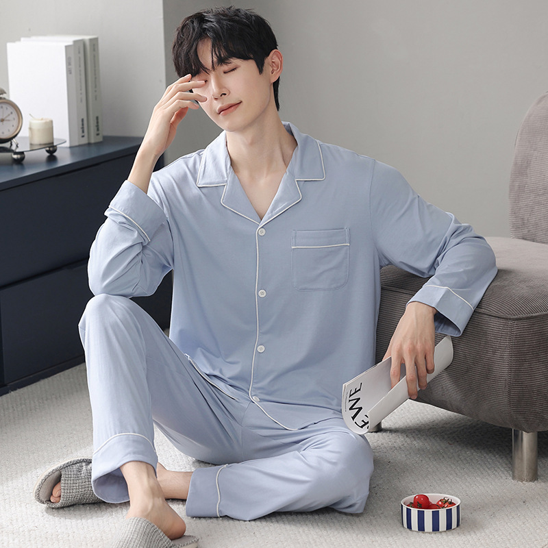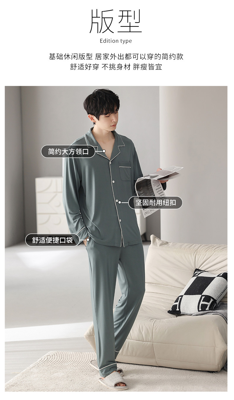 남성 청소년 모달 잠옷 봄과 가을 새로운 긴팔 심플 가디건 홈웨어 패션 슈트는 밖에서 착용 가능