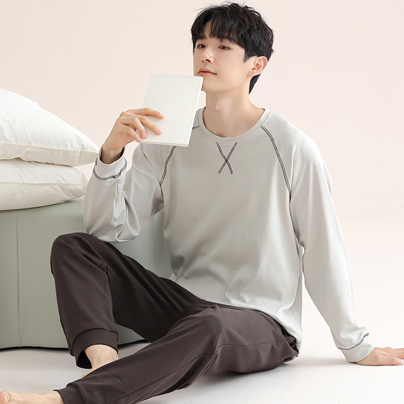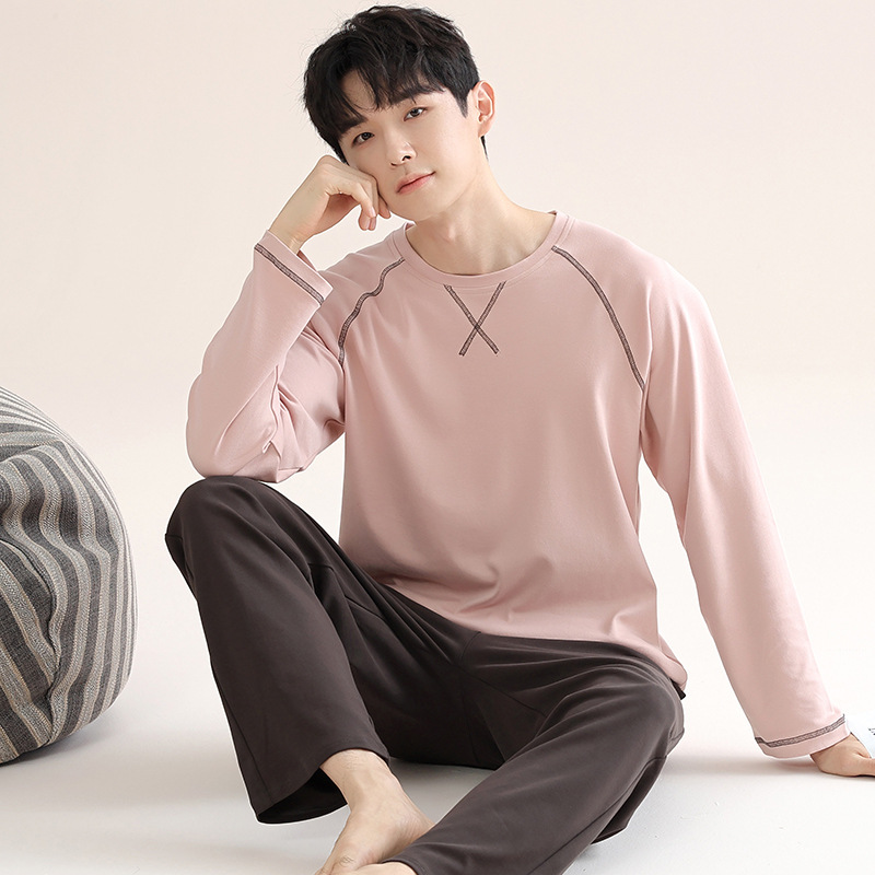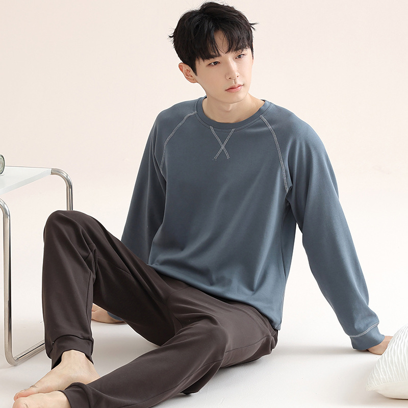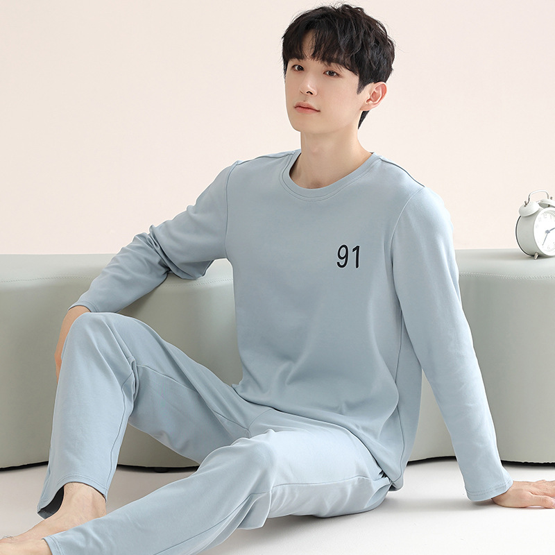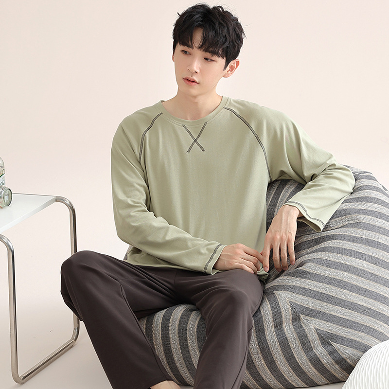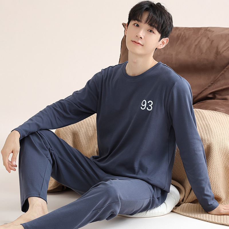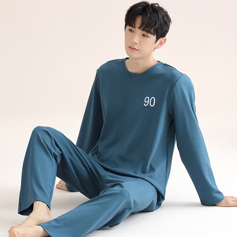남성 청소년 모달 잠옷 봄과 가을 새로운 긴팔 심플 가디건 홈웨어 패션 슈트는 밖에서 착용 가능