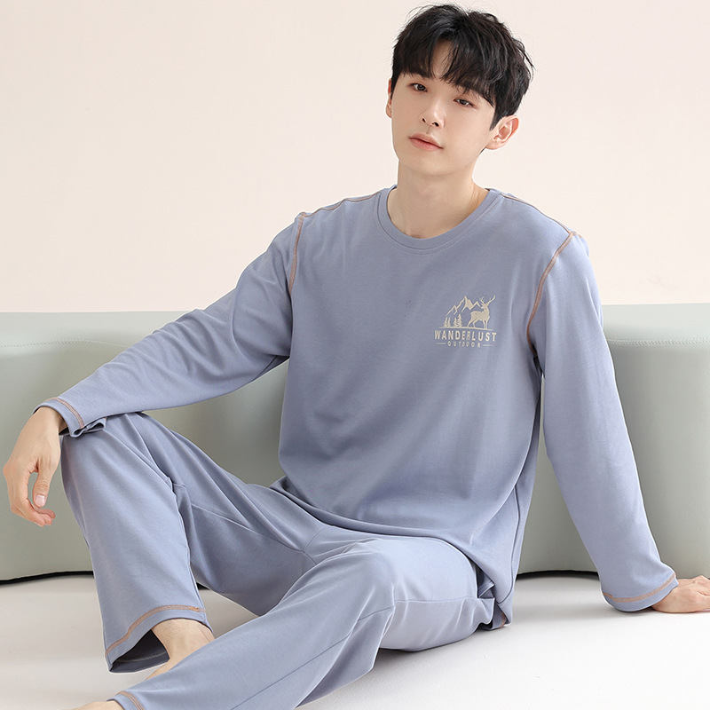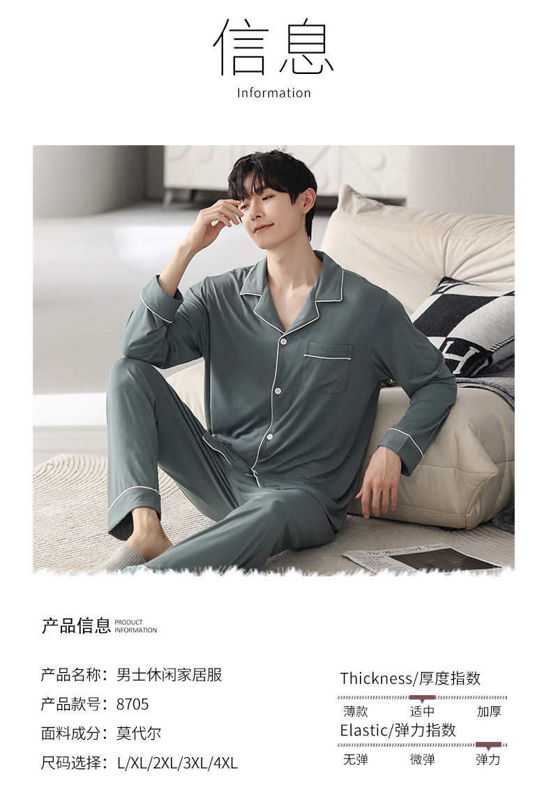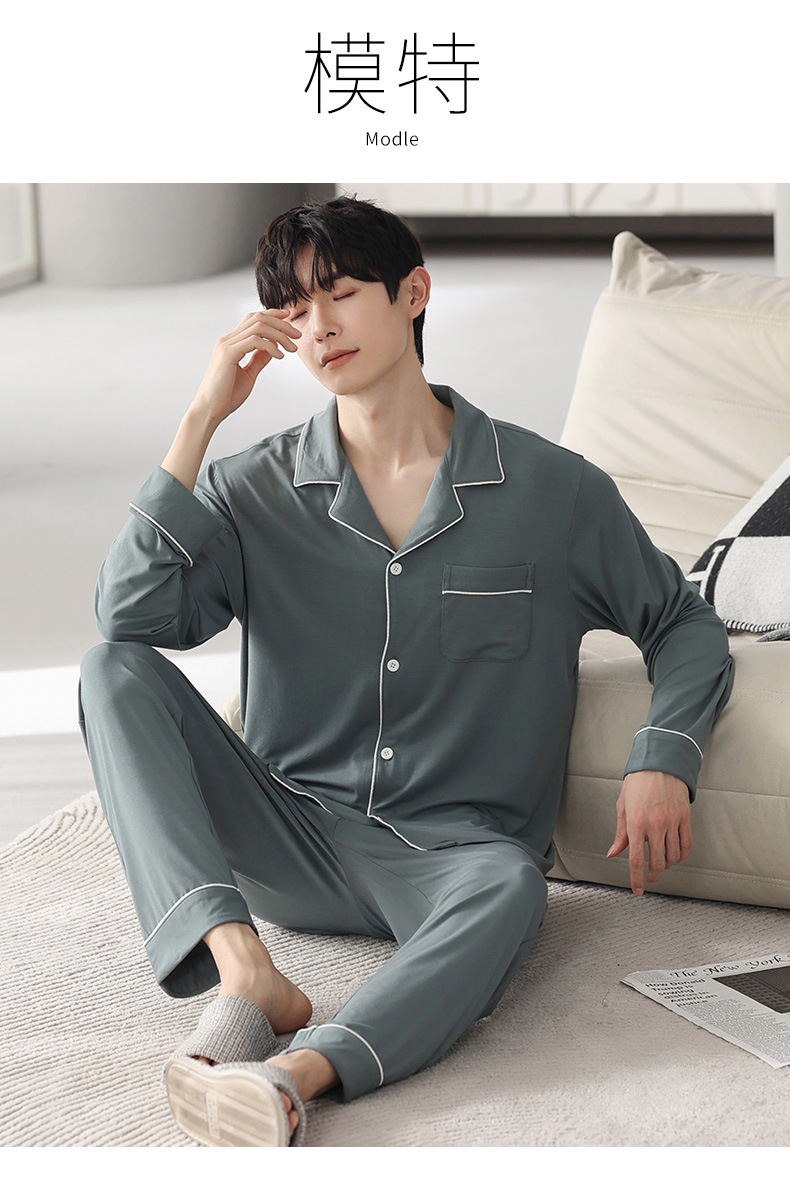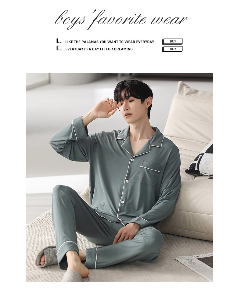 남성 청소년 모달 잠옷 봄과 가을 새로운 긴팔 심플 가디건 홈웨어 패션 슈트는 밖에서 착용 가능스토어 가기