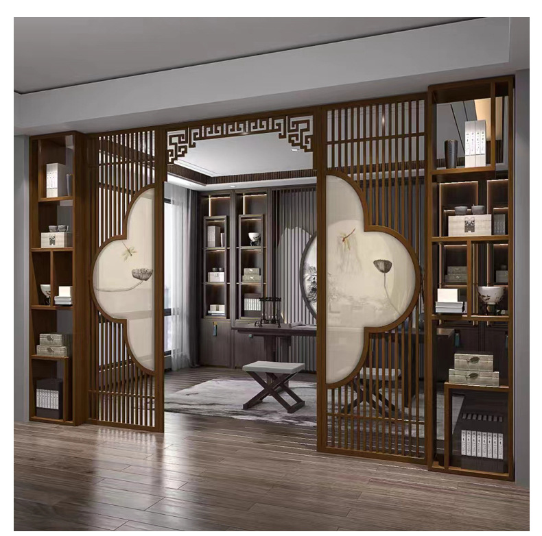 새로운 중국 거실 파티션 화면 입구 캐비닛 홈 단단한 나무 대피소 빛 럭셔리 간단한 문 반 벽 중공 도매