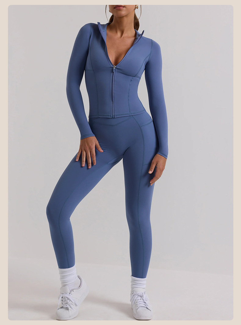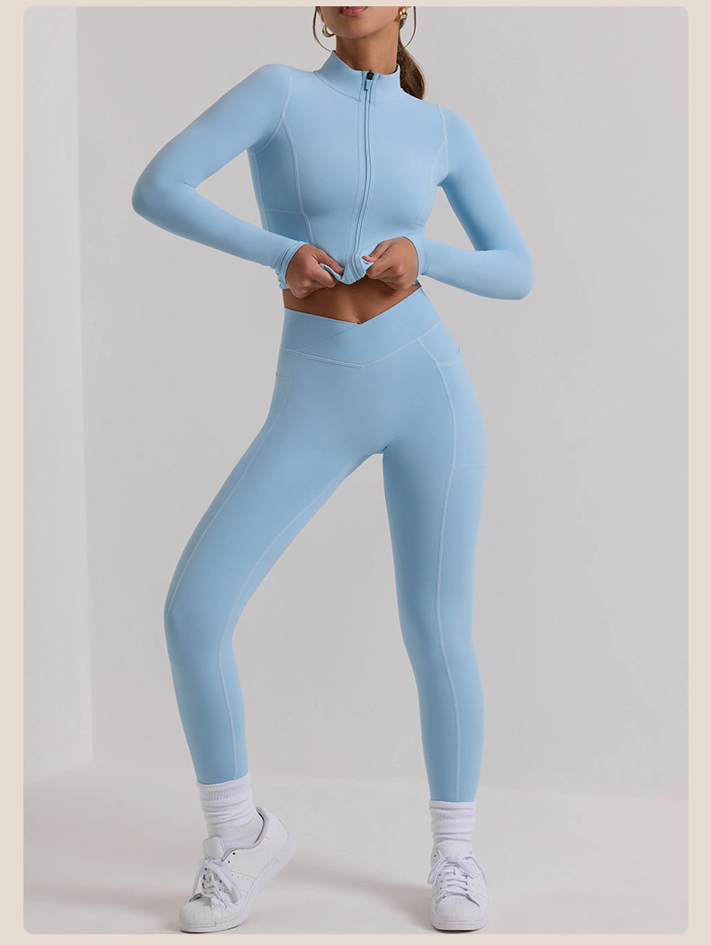 국경 간 새로운 긴팔 탑 요가 의류 세트 피트니스 고급 운동복 세트 여성 투피스 피트니스 의류