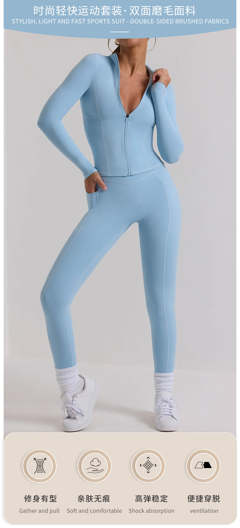 국경 간 새로운 긴팔 탑 요가 의류 세트 피트니스 고급 운동복 세트 여성 투피스 피트니스 의류스토어 가기