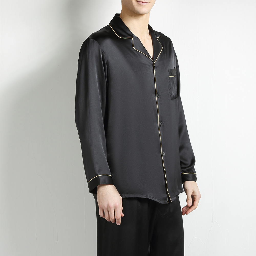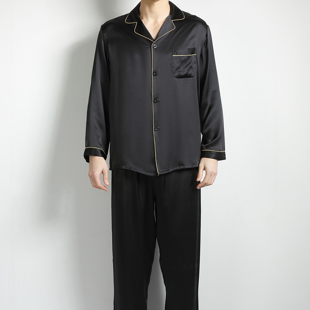 무거운 실크 남성용 잠옷 4XL 캐주얼 느슨한 봄과 여름 편안한 100 누에 실크 가정복 긴팔 투피스 세트스토어 가기