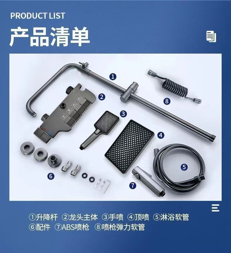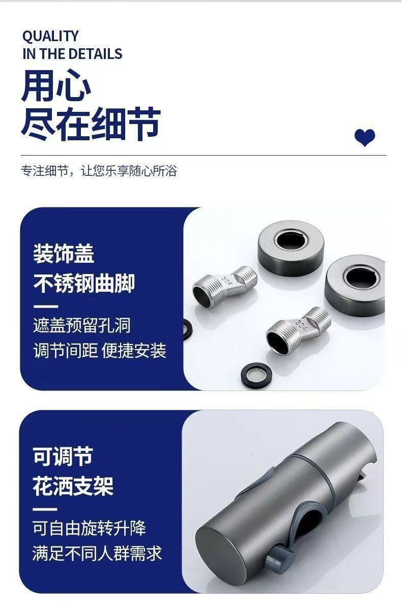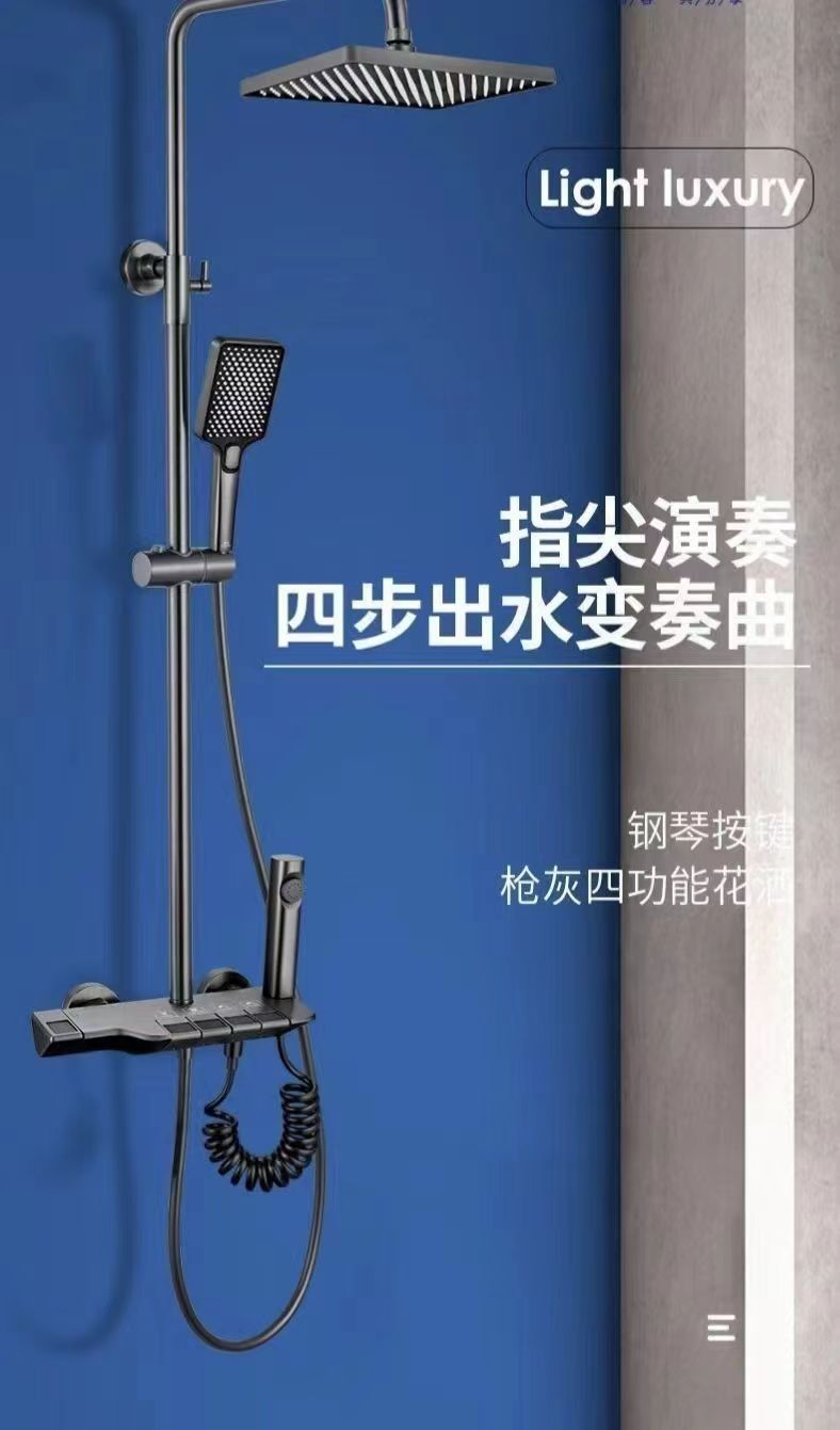 • 모든 구리 피아노 버튼 디지털 디스플레이 총 회색 비 샤워 샤워 욕조 세트