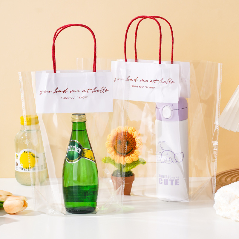 투명 플라스틱 핸드백 동반 선물 간단한 스타일 선물 포장 가방 스승의 날 짠 꽃 가방스토어 가기