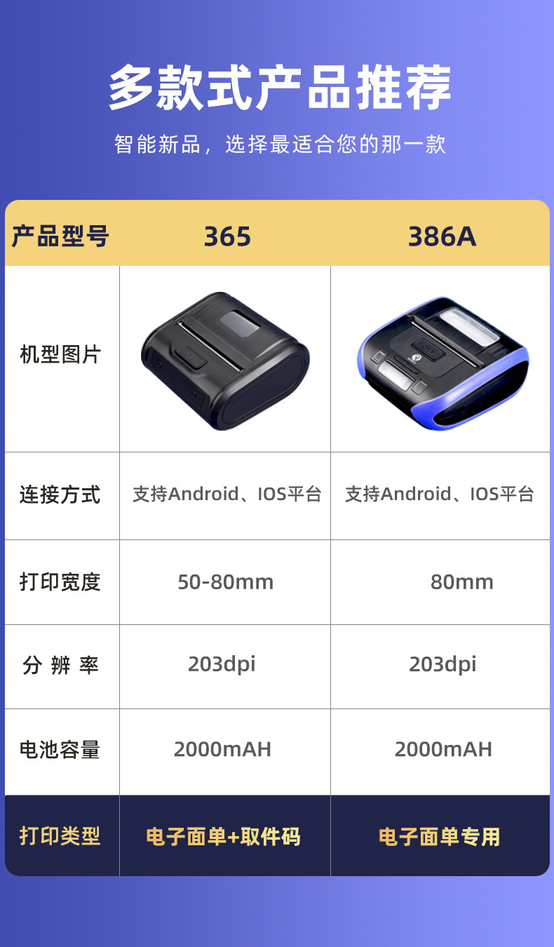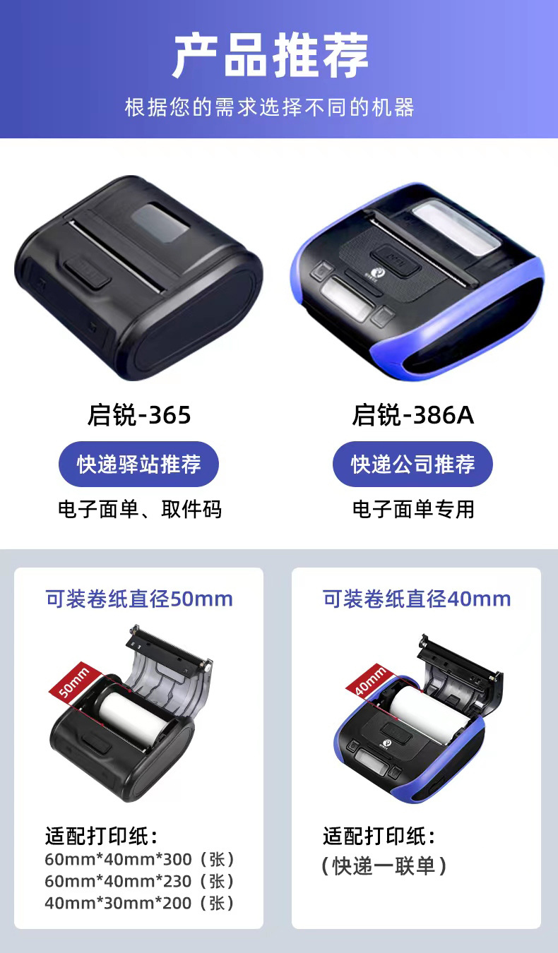 Qirui QR386A 휴대용 단일 기계 열 블루투스 익스프레스 단일 전자 단일 소형 프린터 QR365C스토어 가기