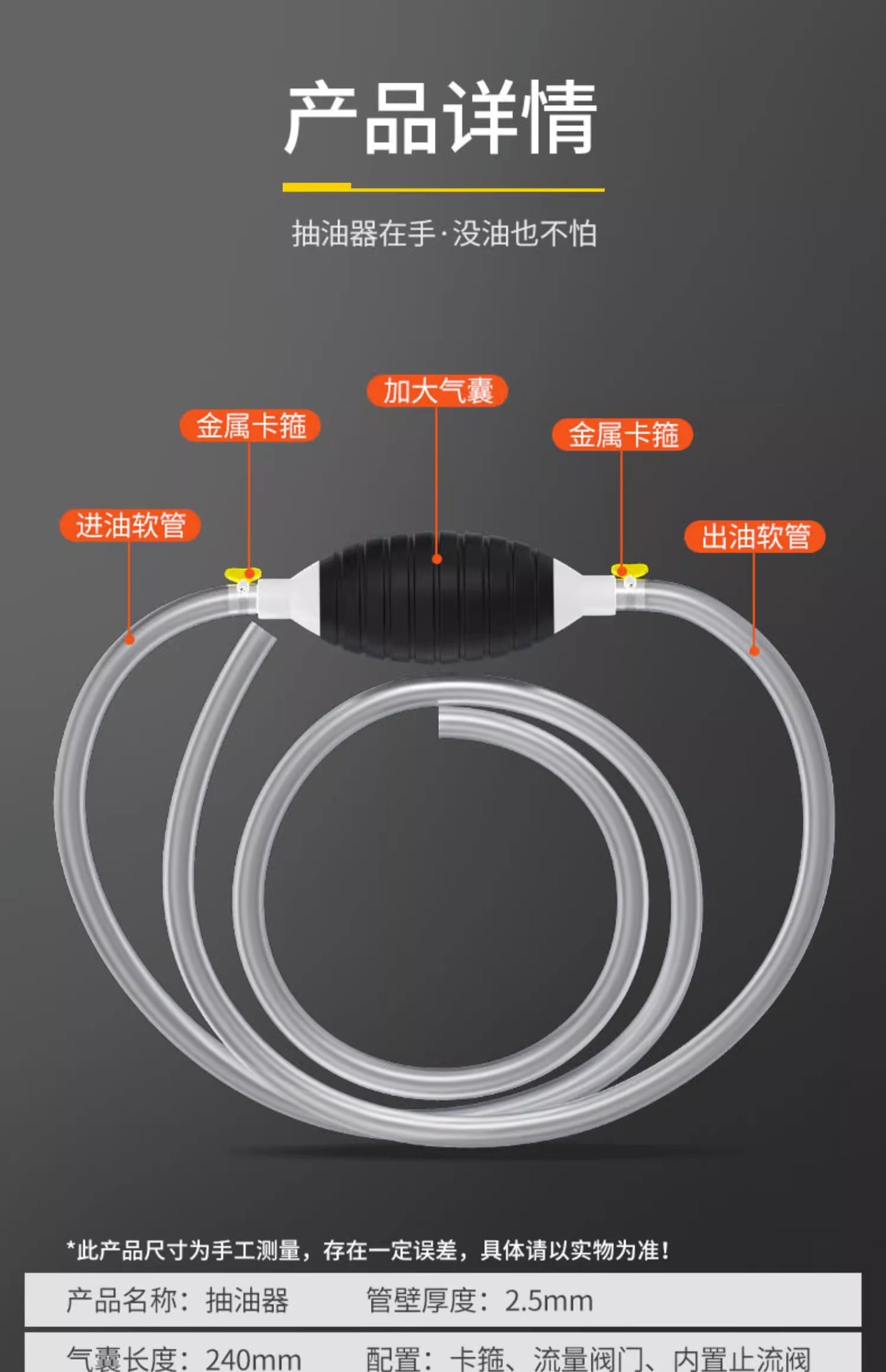 오일 펌프 수동 오일 흡입기 자동차 휘발유 흡입관 펌프 자흡식 디젤 흡입관 물 흡입 호스