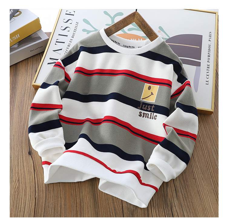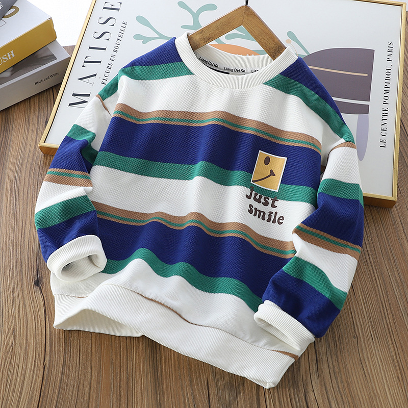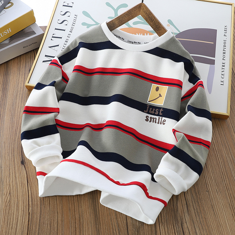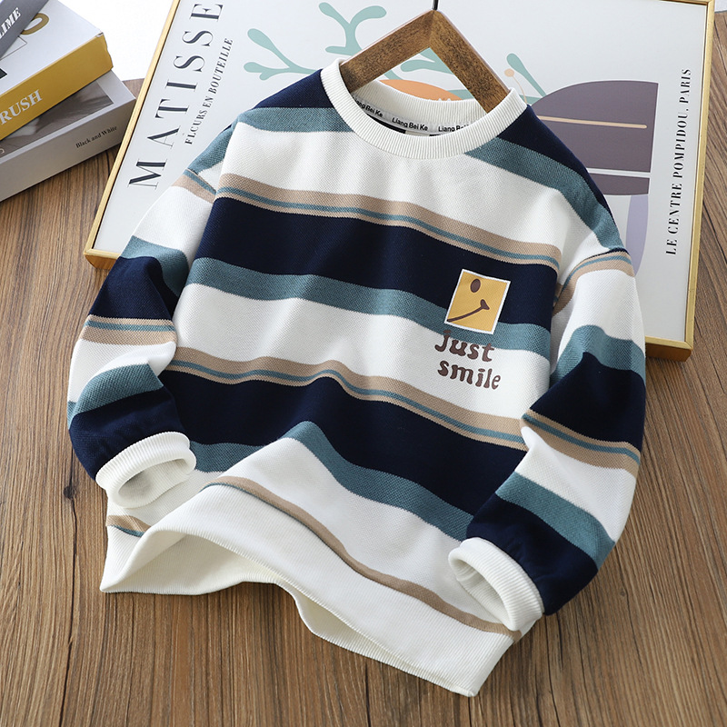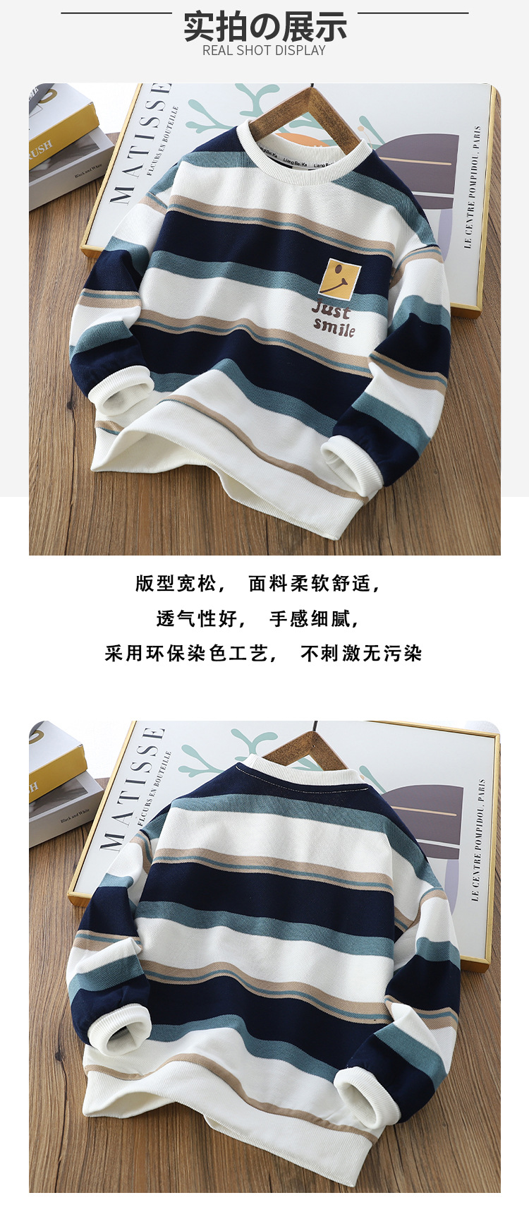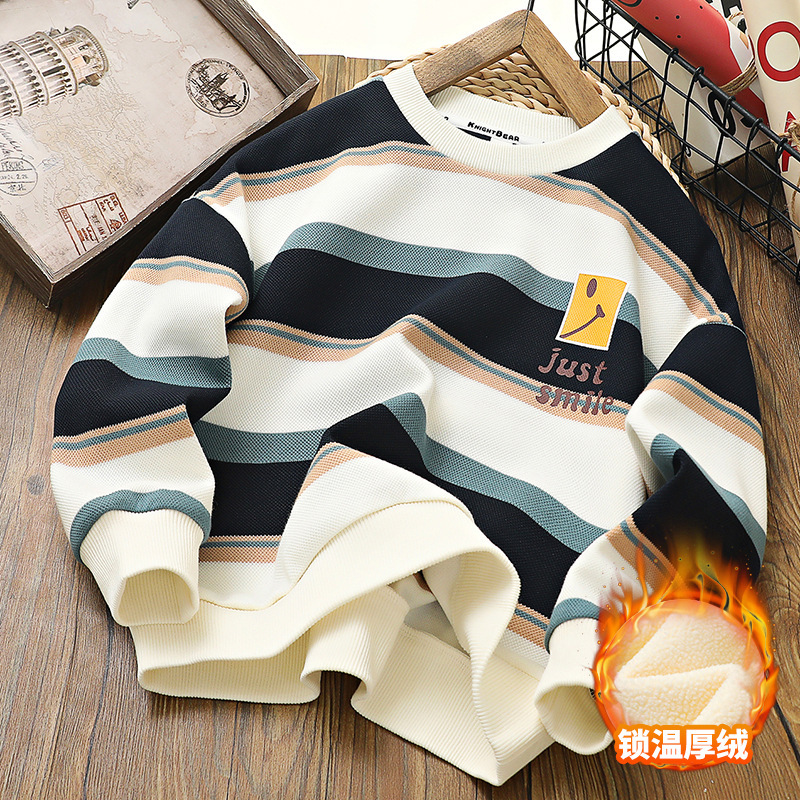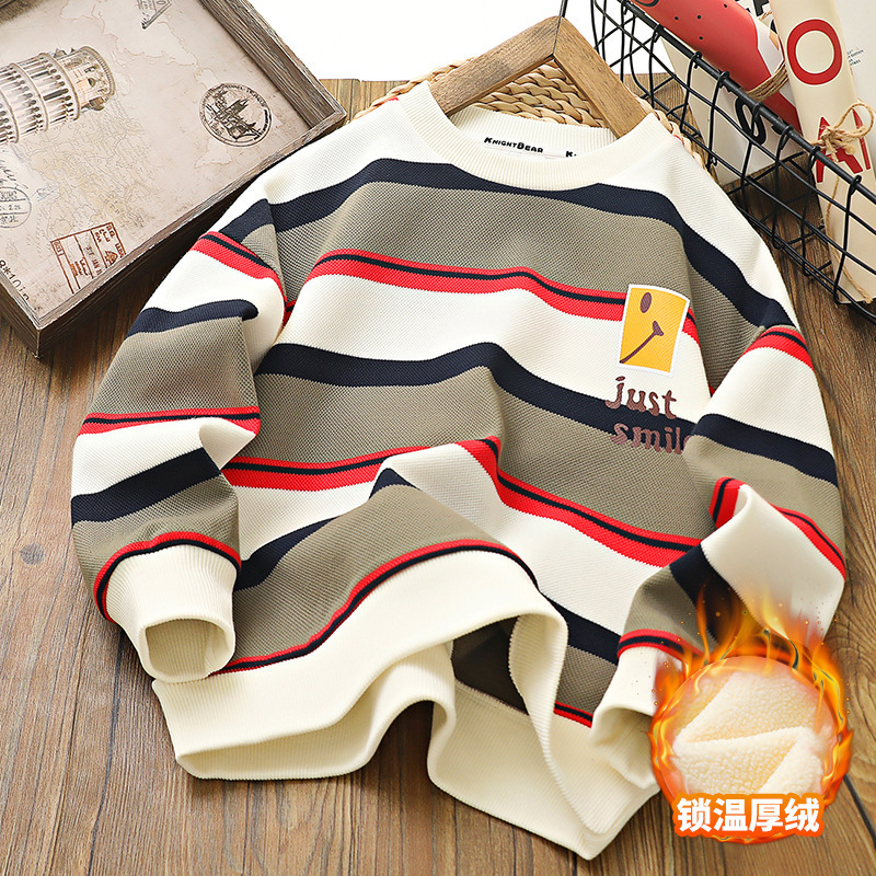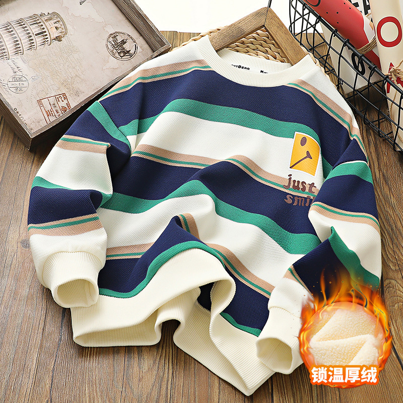 남아용 기모 스웨트셔츠 2025 가을/겨울 아동용 두꺼운 보온 상의 패셔너블한 중대형 아동용 스트라이프 베이스 레이어 셔츠 트렌디스토어 가기