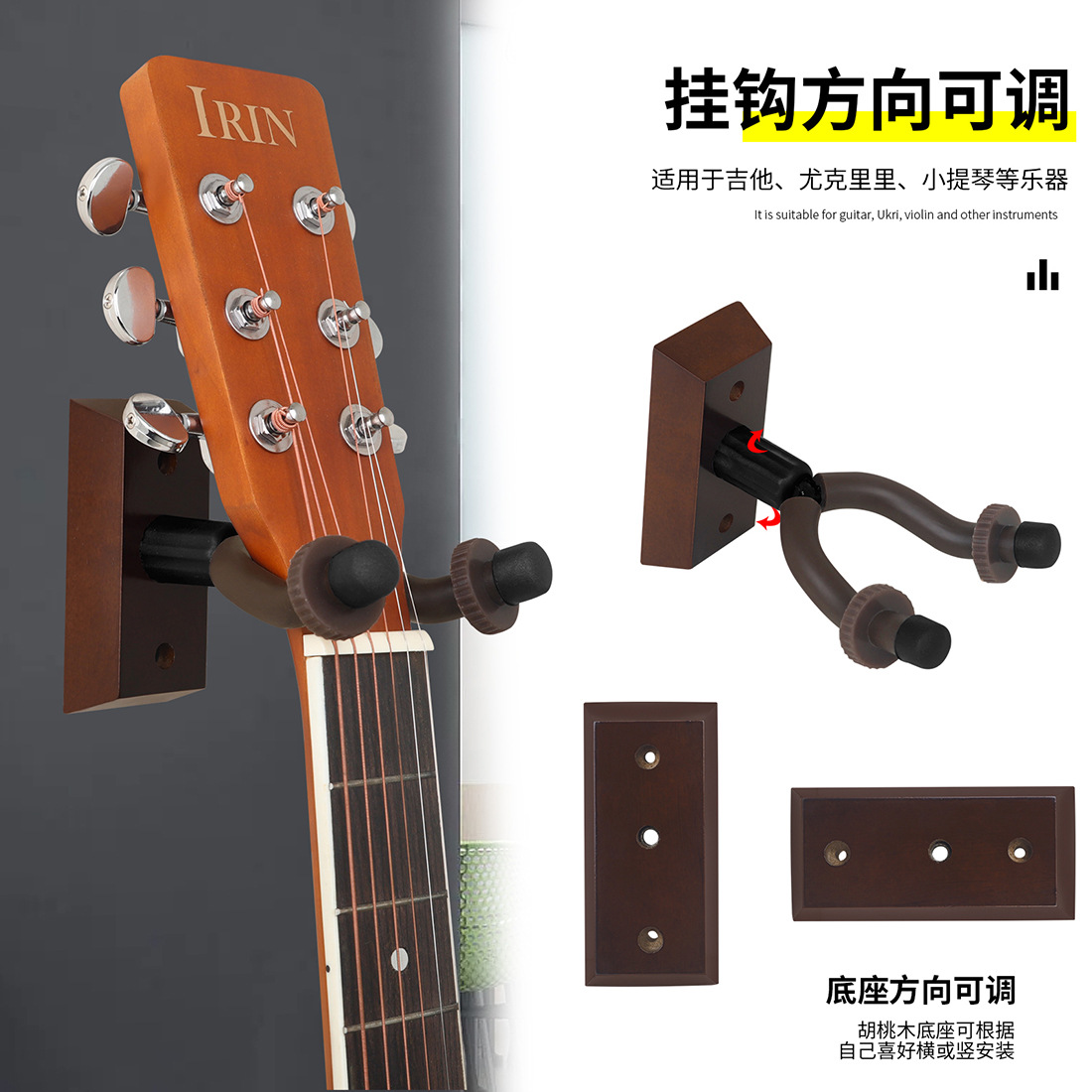 도매 기타 걸이 벽걸이 호두 걸이 우쿨렐레 바이올린 악기 전시 스탠드 벽 후크스토어 가기