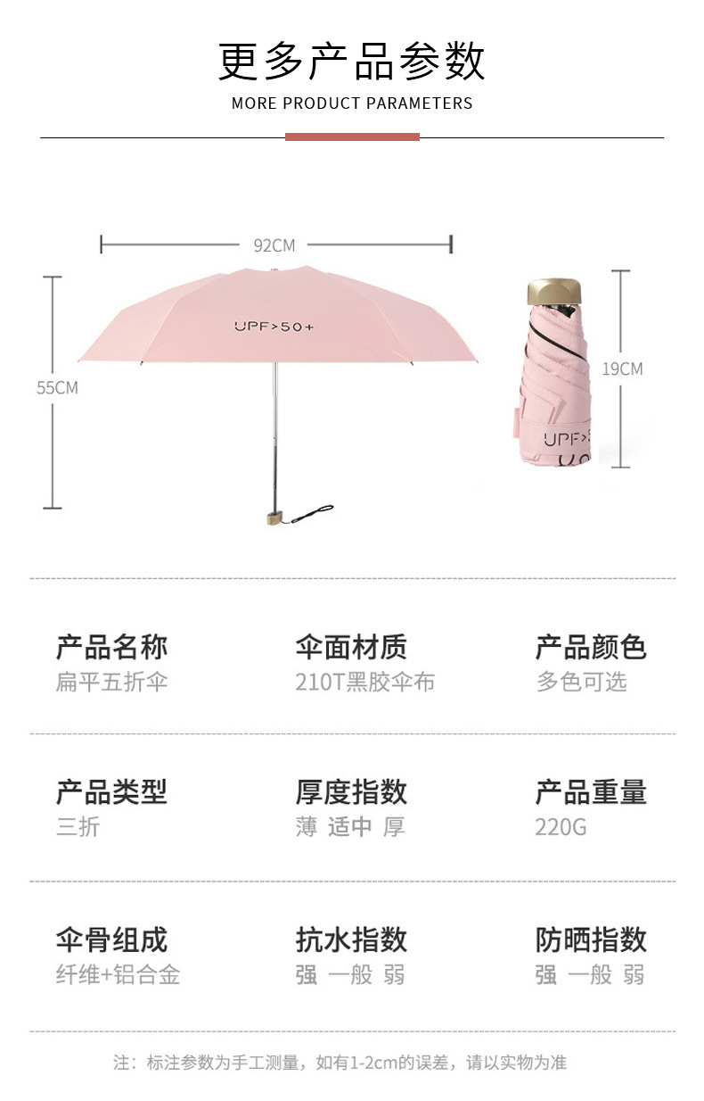 우산 50% off 양산, 태양 우산, 미니 휴대용 포켓 우산, 비와 햇빛 모두에 사용 가능한 접이식 우산