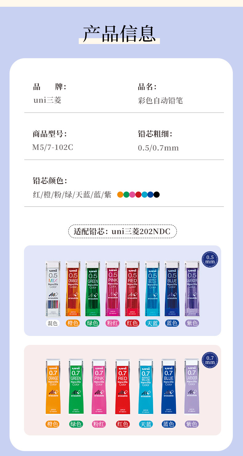 일본 UNI 미쓰비시 학생 컬러 연필 그림 손 계정 컬러 펜 M5-102C 컬러 페인트 연필