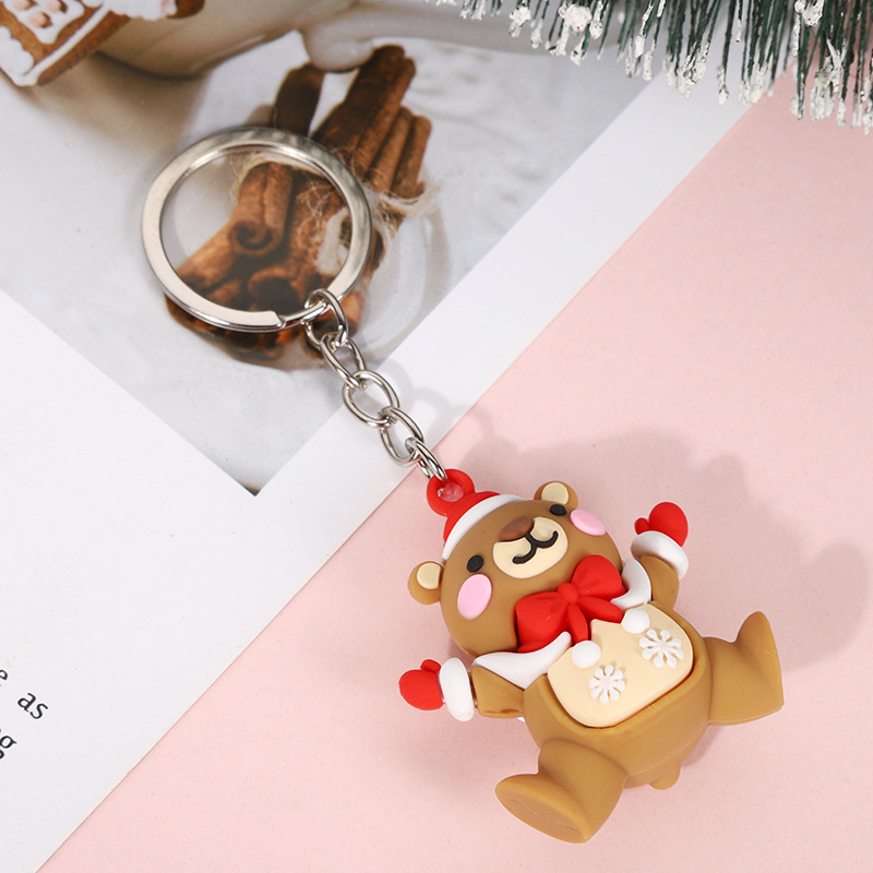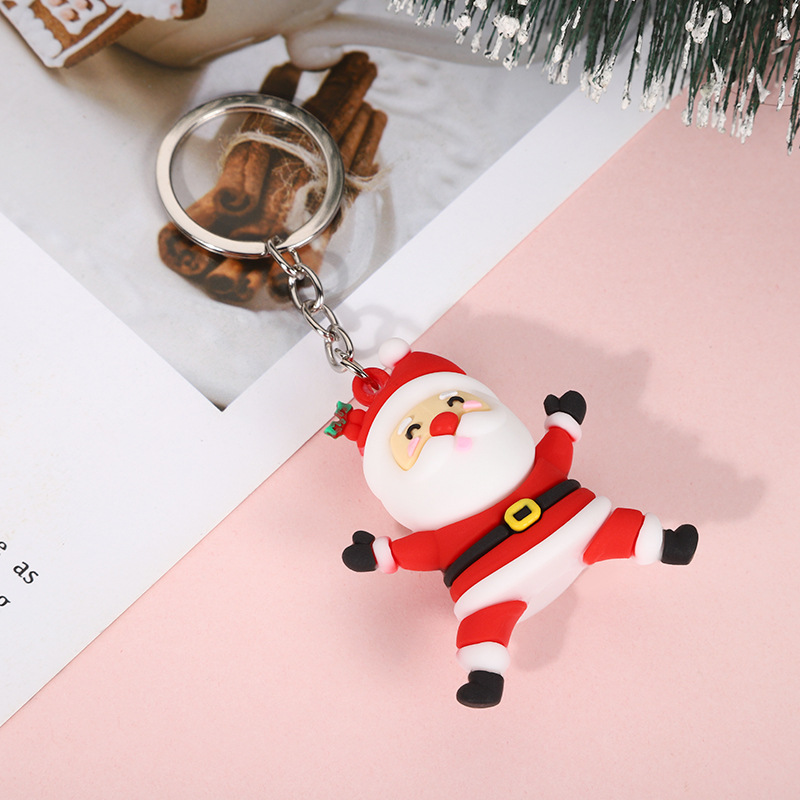 산타 클로스 PVC 부드러운 고무 인형 열쇠 고리 펜던트 만화 눈사람 열쇠 고리 펜던트 휴일 선물스토어 가기