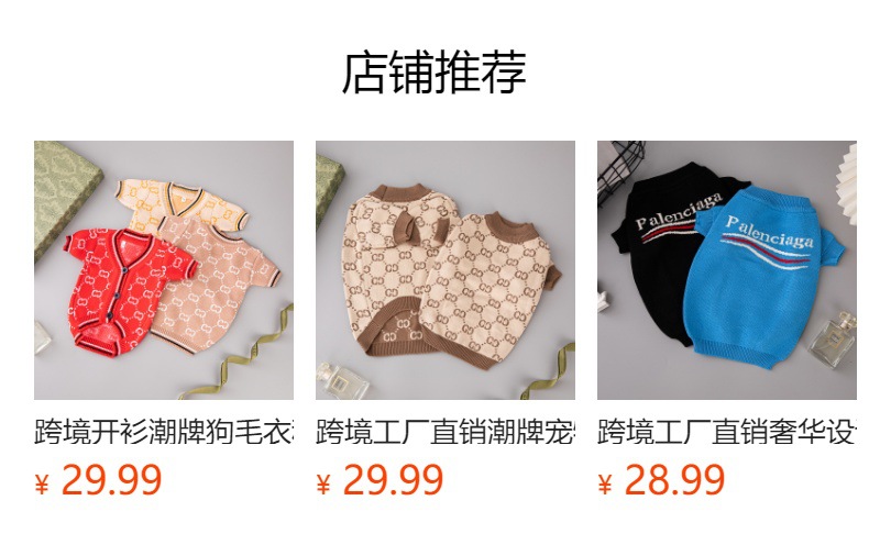 공장 직접 신선한 귀여운 국경 패션 브랜드 개 스웨터 가을과 겨울 따뜻한 두꺼운 패션 애완 동물 옷스토어 가기