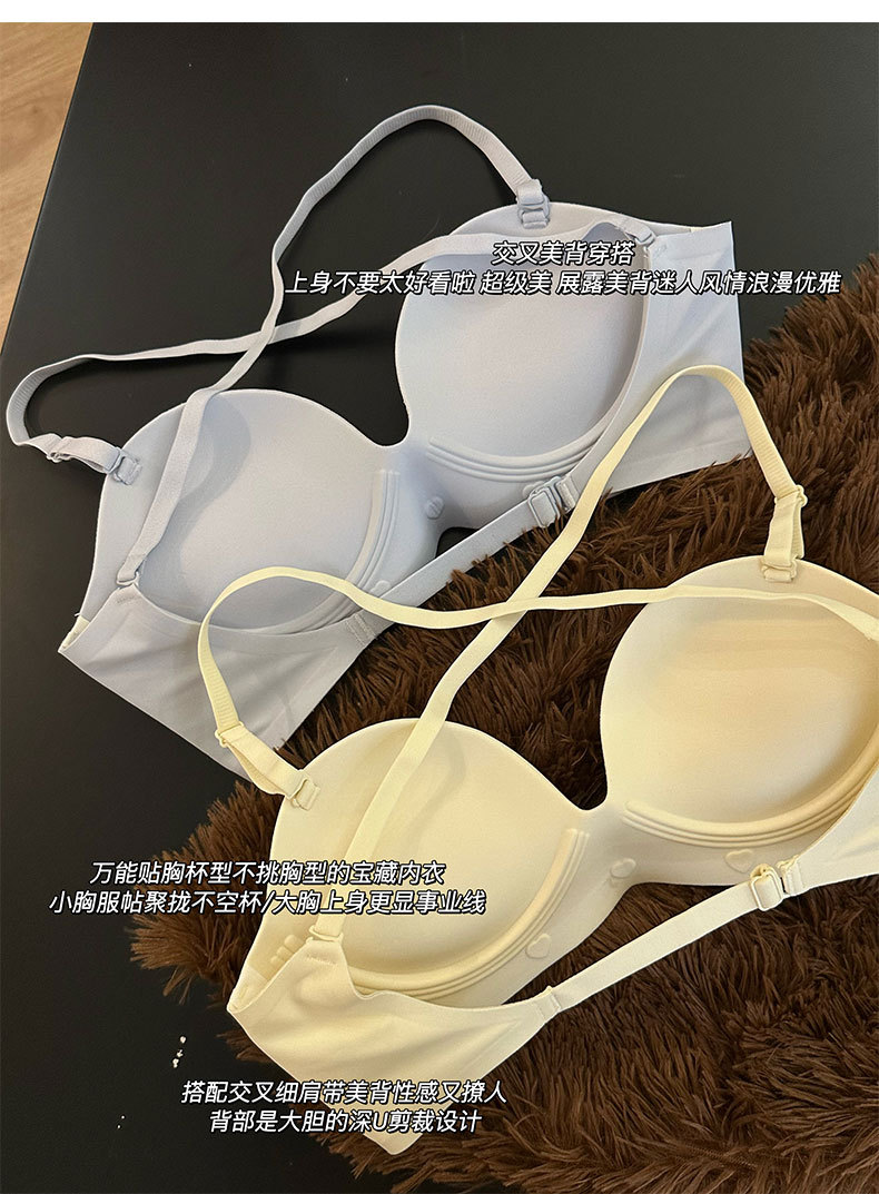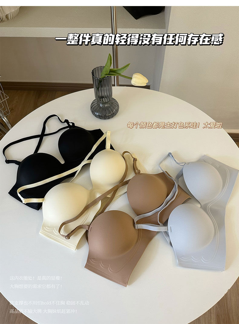2023 십자가 아름다운 등 내부 옷 소녀의 외부 확대 등이없는 작은 가슴 두꺼운 푸시 업 브래지어 여름 대외 무역 유약스토어 가기