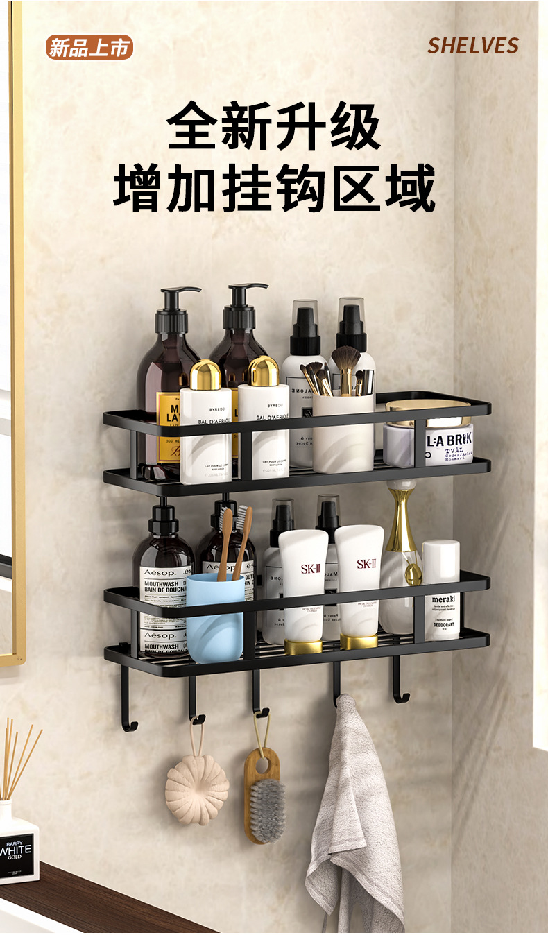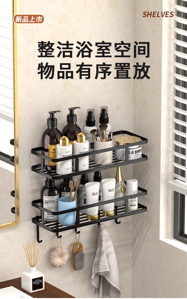 크로스 보더 펀치 프리 욕실 수납 랙 벽걸이 형 수납 랙 욕실 가정용 세면 용품 주방 마감 선반스토어 가기