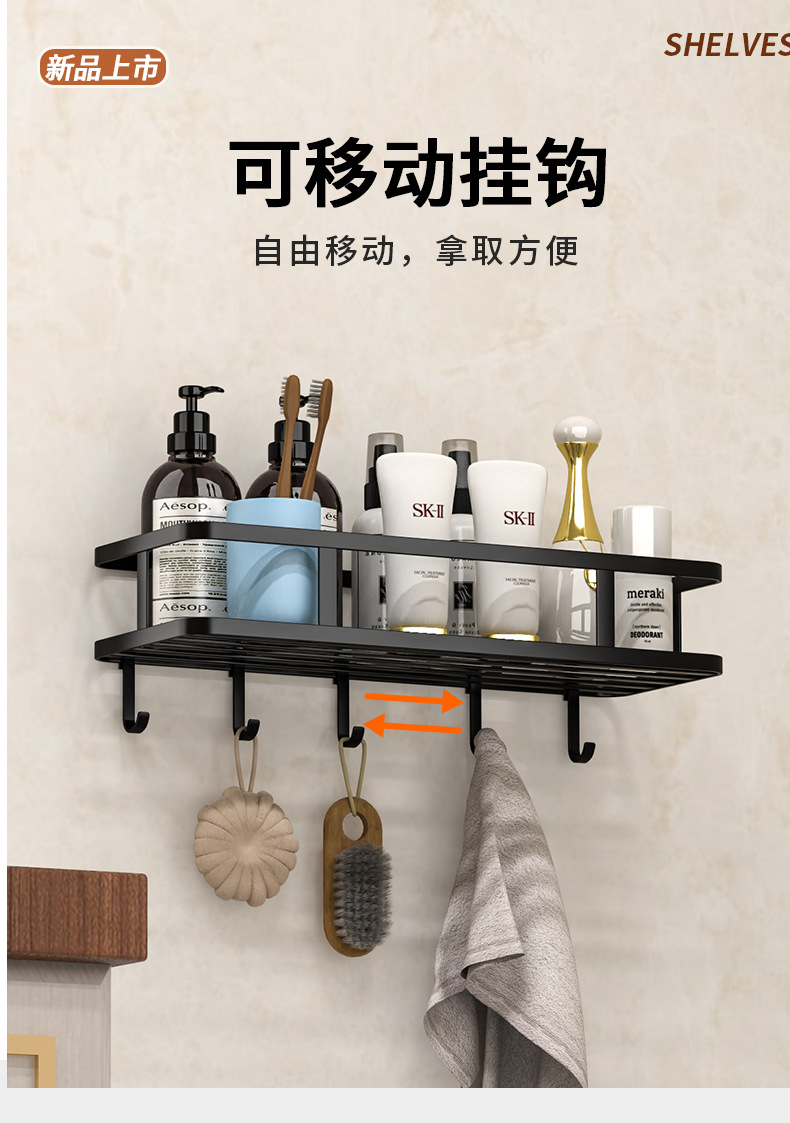 • 단층 보관 랙 (5 후크) + 비누 랙 1 개