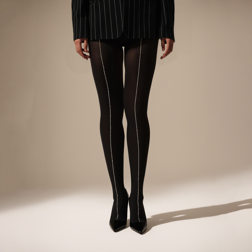 봄과 여름 초박형 10d 백 스티치 크리스탈 라인 스톤 스파클링 플러스 사이즈 백 스티칭 중간 두께의 스트립 방지 실크 팬티 스타킹