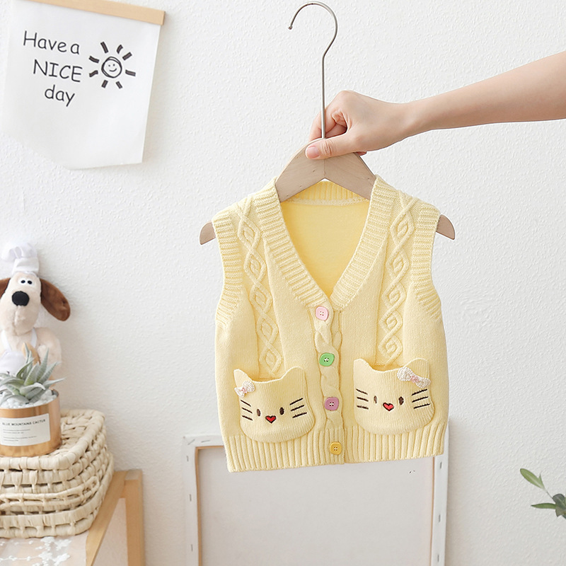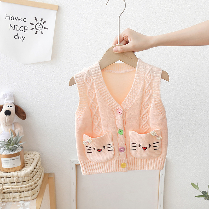 드롭쉬핑 2025 여아 스웨터 조끼 가을 겨울 만화 캐릭터 아기 가을옷 가디건 유아 니트 조끼