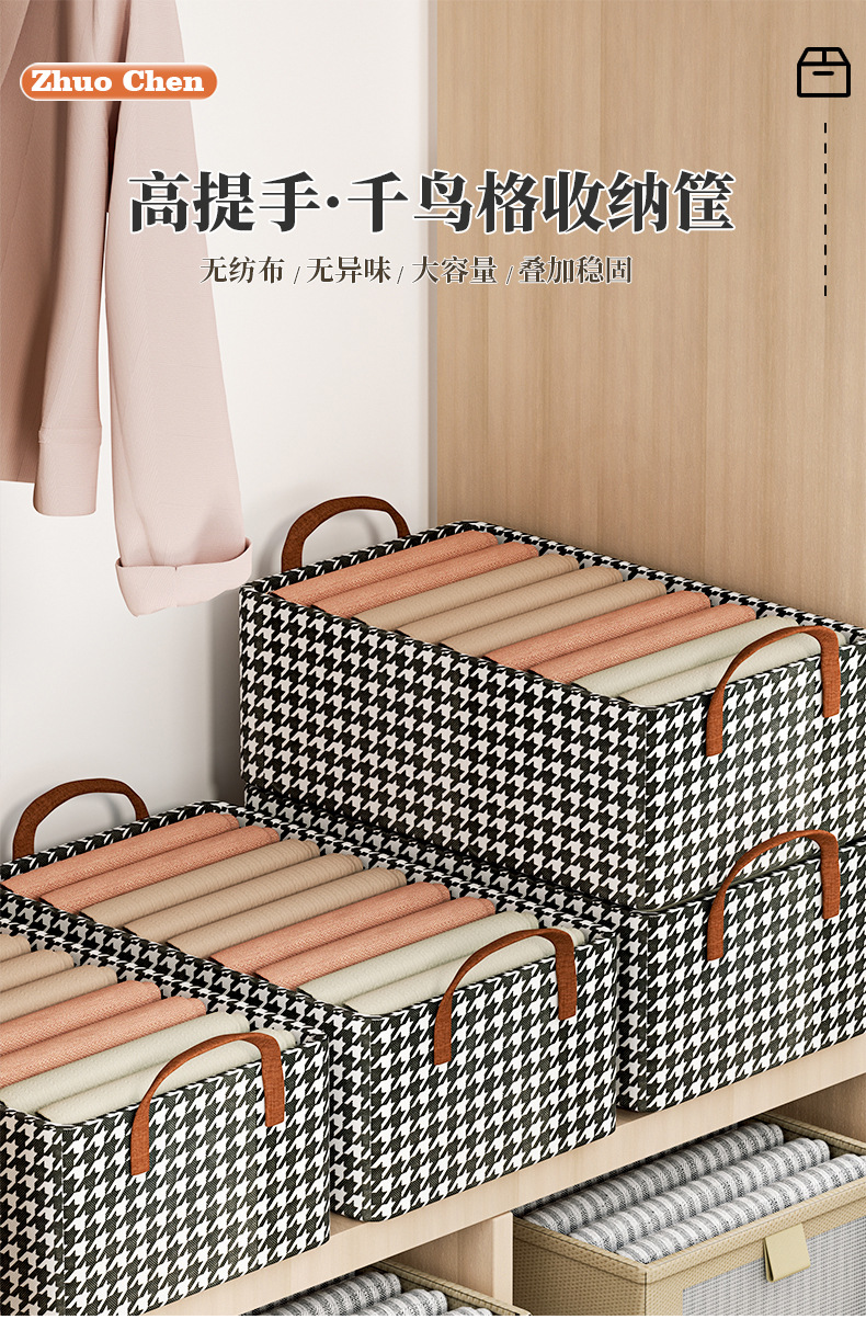 접이식 가정용 기숙사 수납함, 물건 정리함, 물떼새 격자무늬 패브릭 의류 스틸 프레임 수납함, 침실 수납함스토어 가기