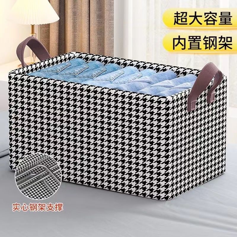 접이식 가정용 기숙사 수납함, 물건 정리함, 물떼새 격자무늬 패브릭 의류 스틸 프레임 수납함, 침실 수납함