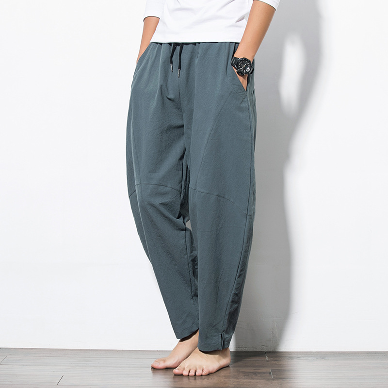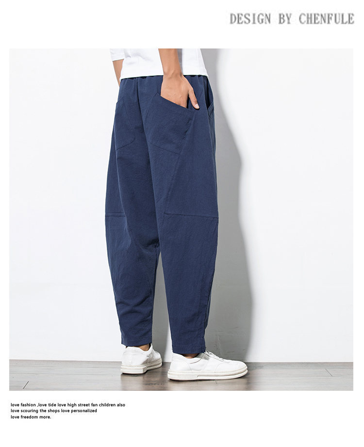 공장 도매 2023 패션 느슨한 바지 남성 플러스 비료 플러스 사이즈 면 캐주얼 바지 중국 스타일 Harlan 바지 해외 무역