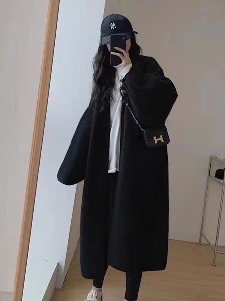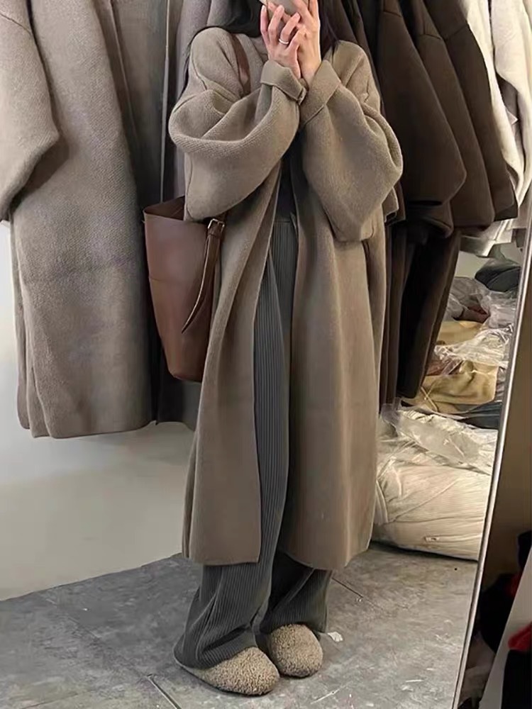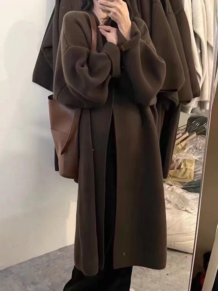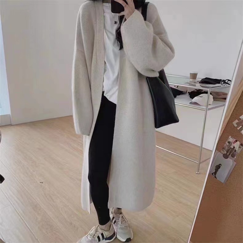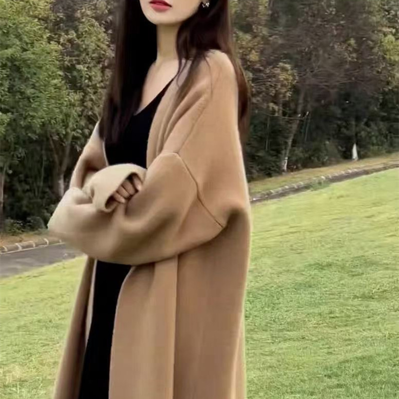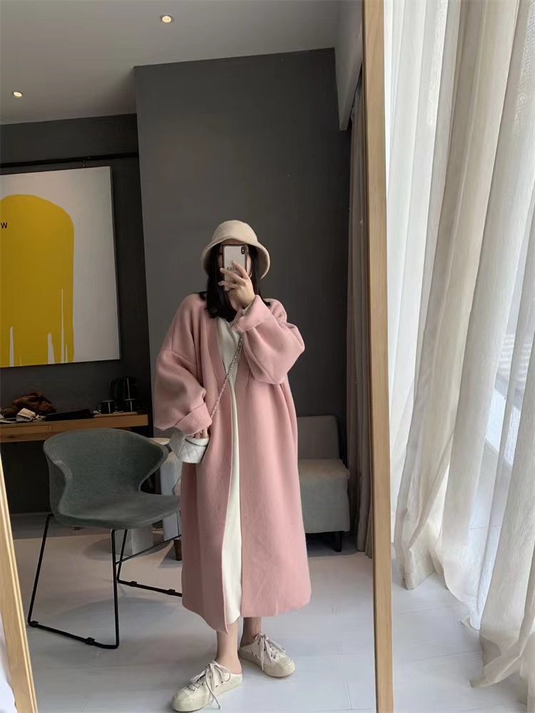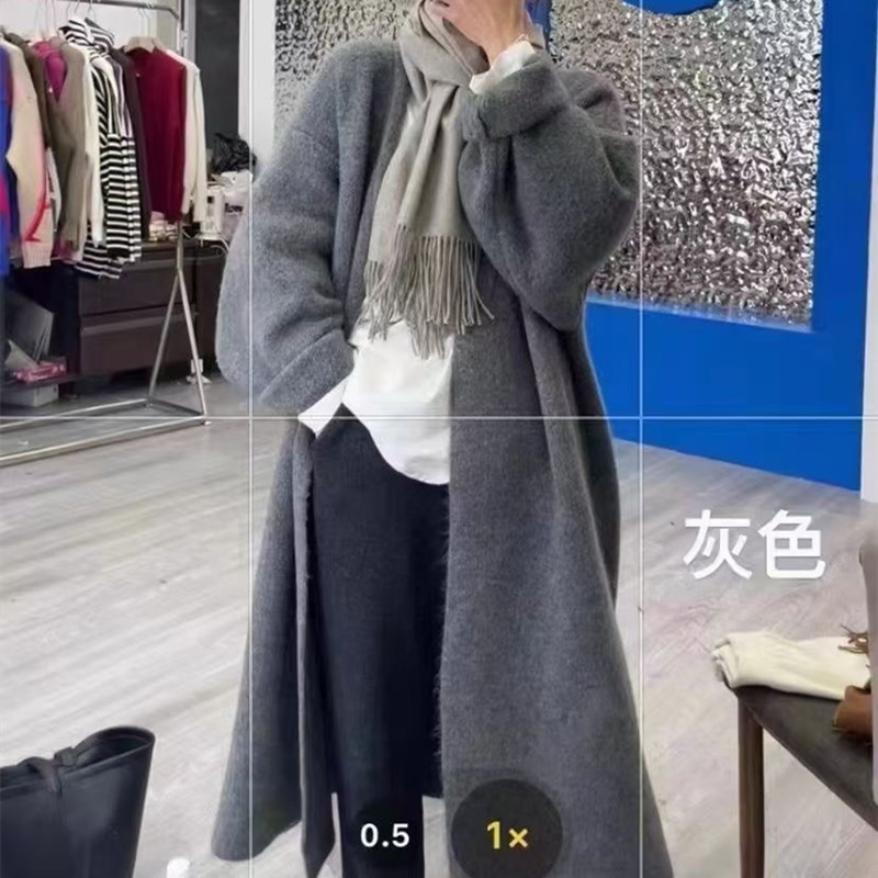 복고풍 디자인의 여성용 중간 길이 스웨터 재킷 일본식 게으른 스타일 느슨한 2025 가을 겨울 새로운 니트 가디건스토어 가기