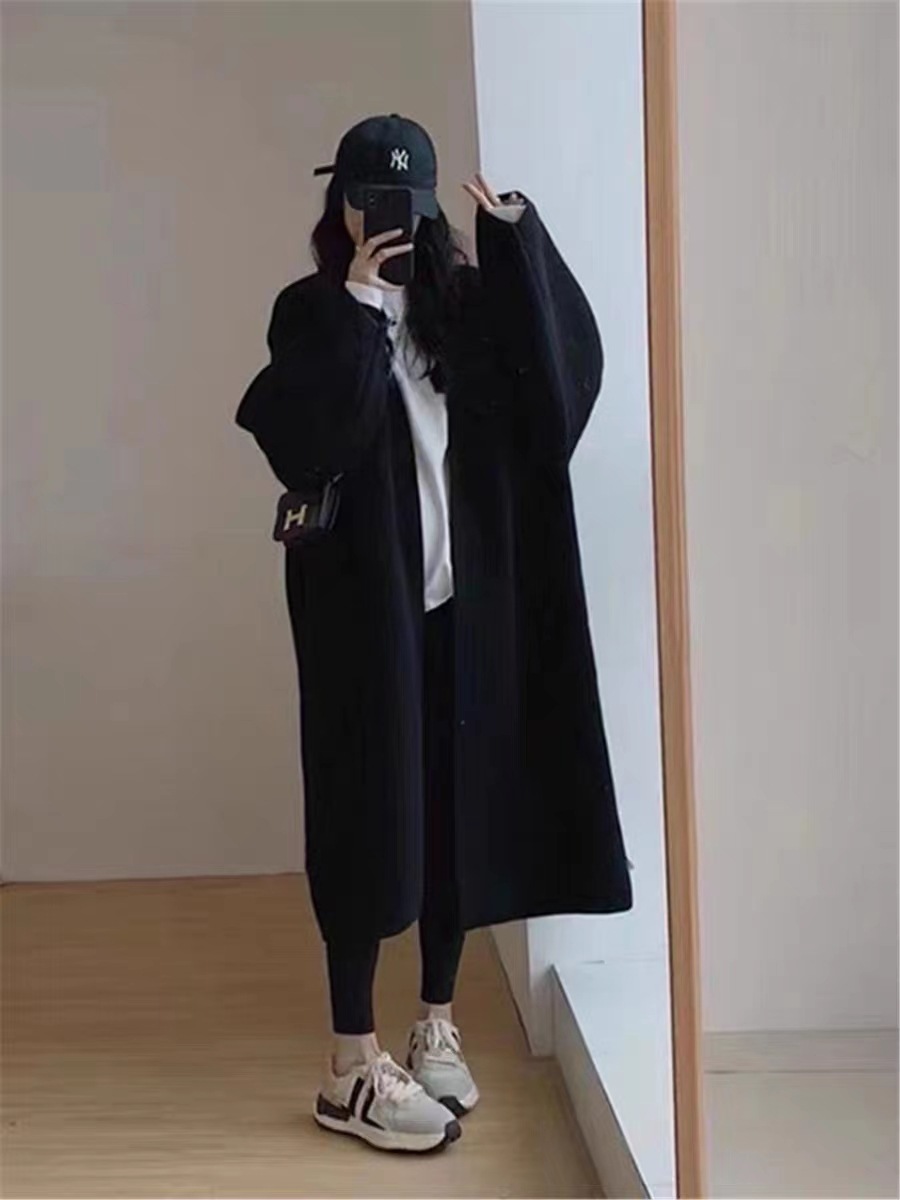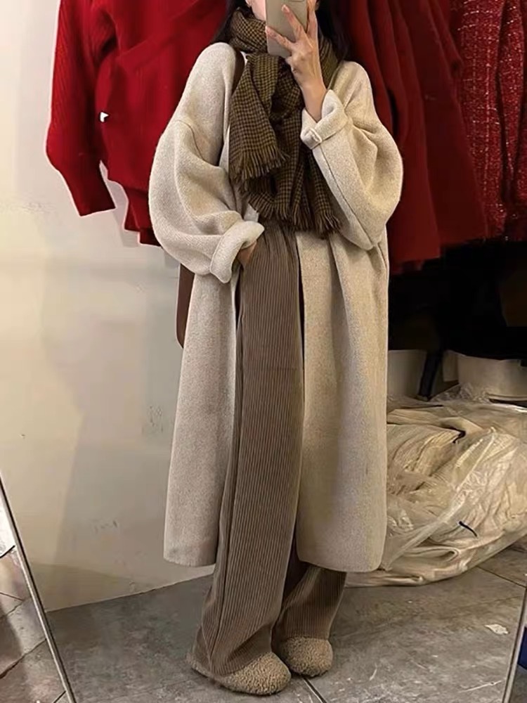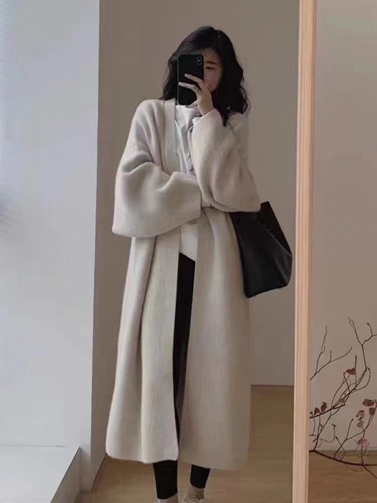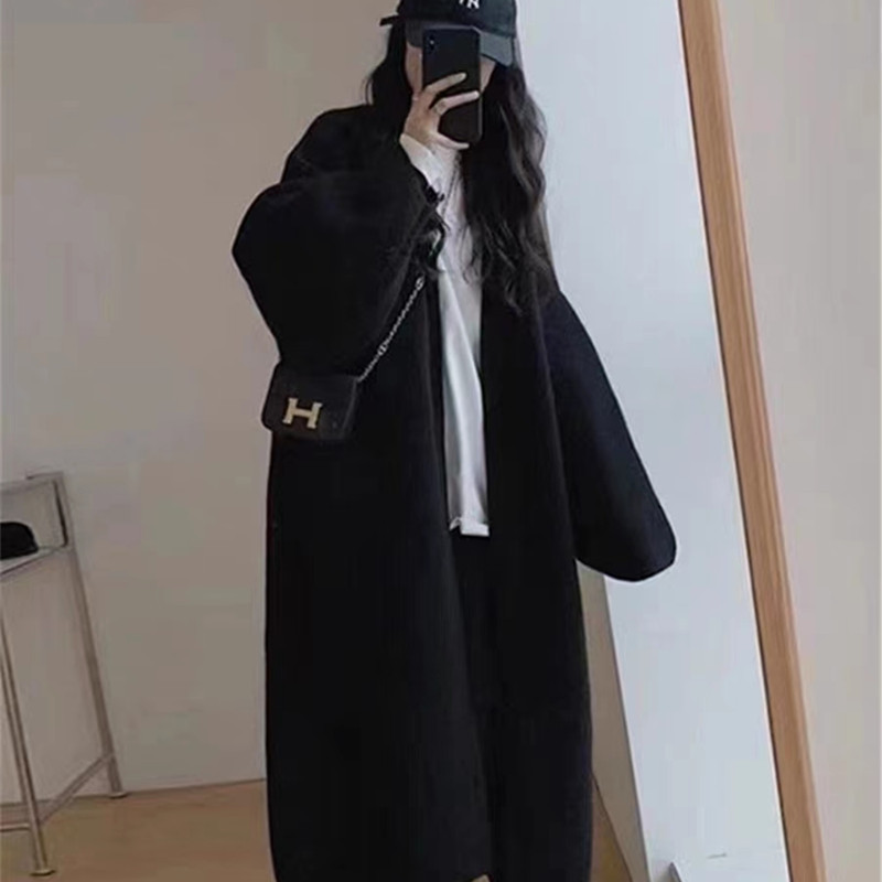 복고풍 디자인의 여성용 중간 길이 스웨터 재킷 일본식 게으른 스타일 느슨한 2025 가을 겨울 새로운 니트 가디건