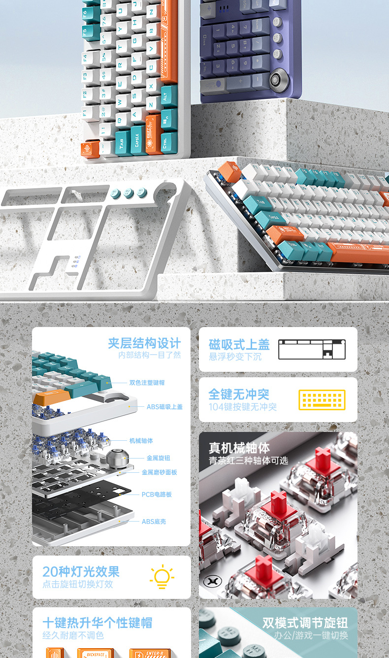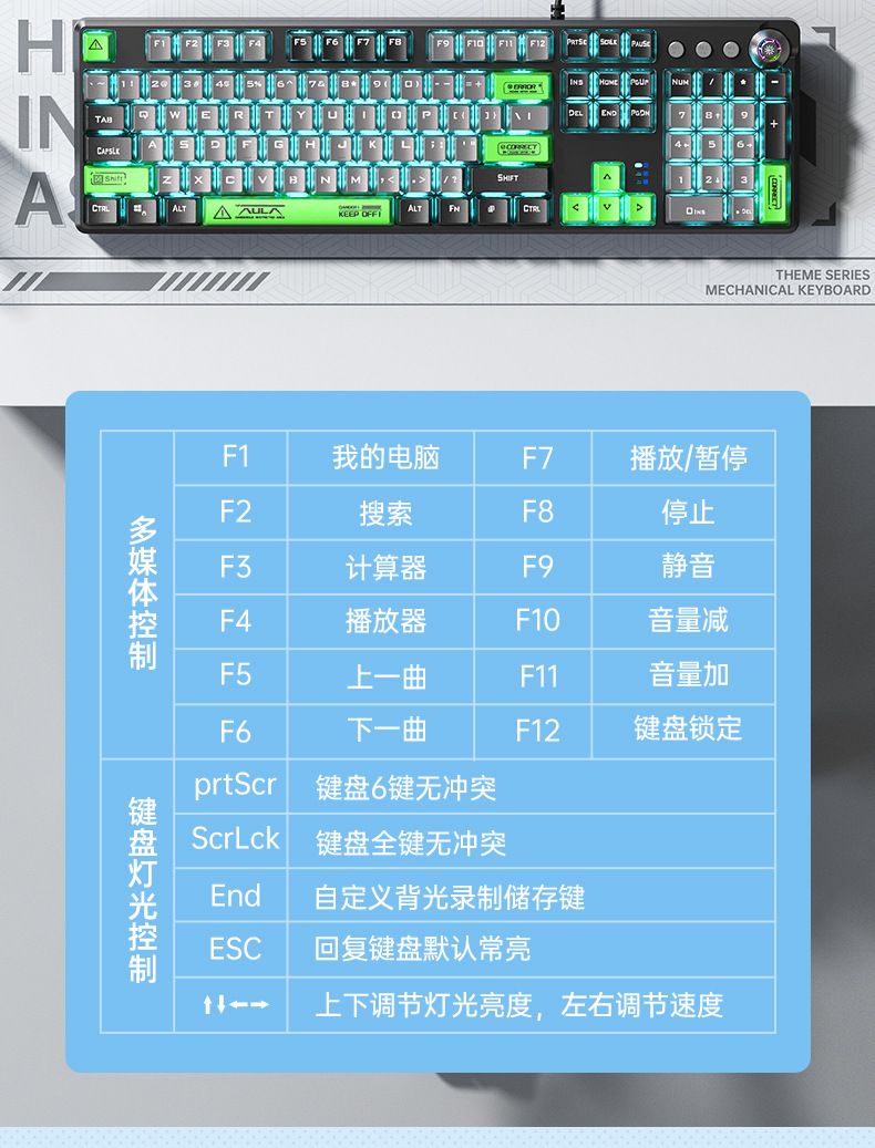 AULA Wolf Spider F2088PRO 기계식 키보드 컴퓨터 유선 게이밍 키보드 고급스러운 디자인의 자석식 상단 커버 해외 직구