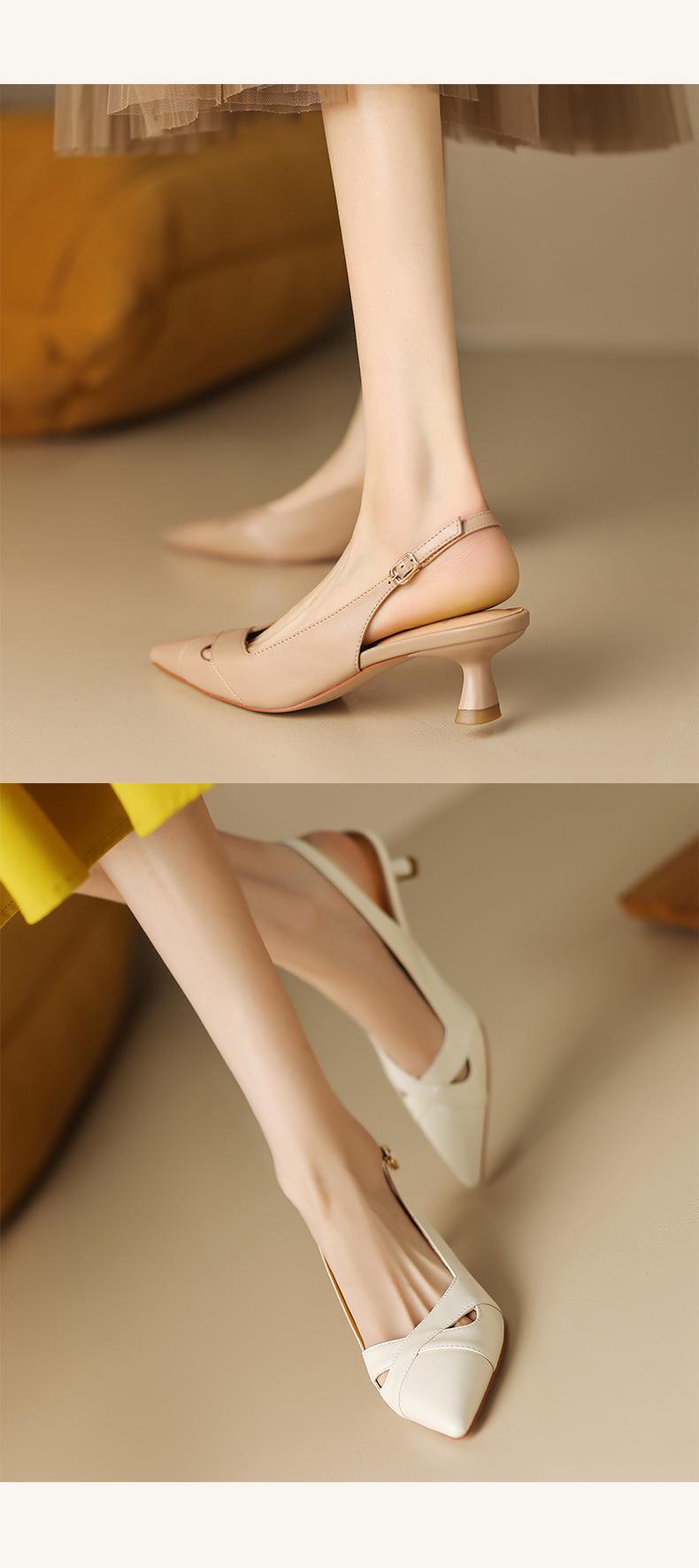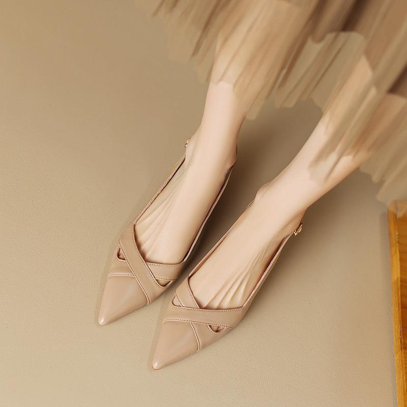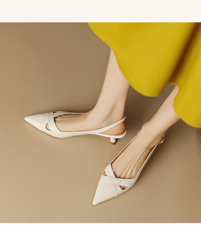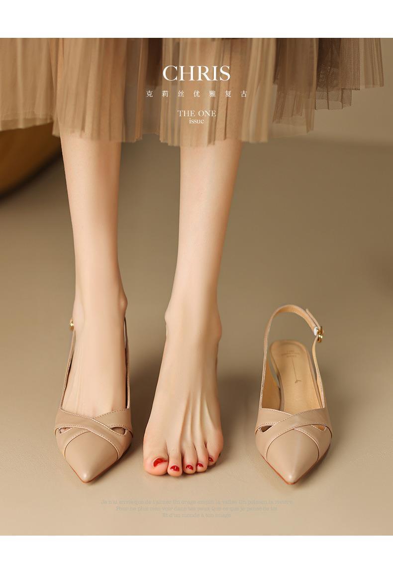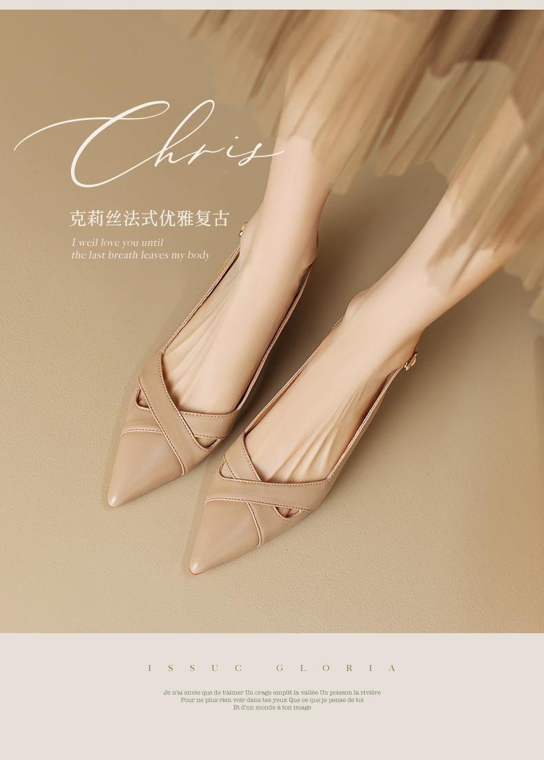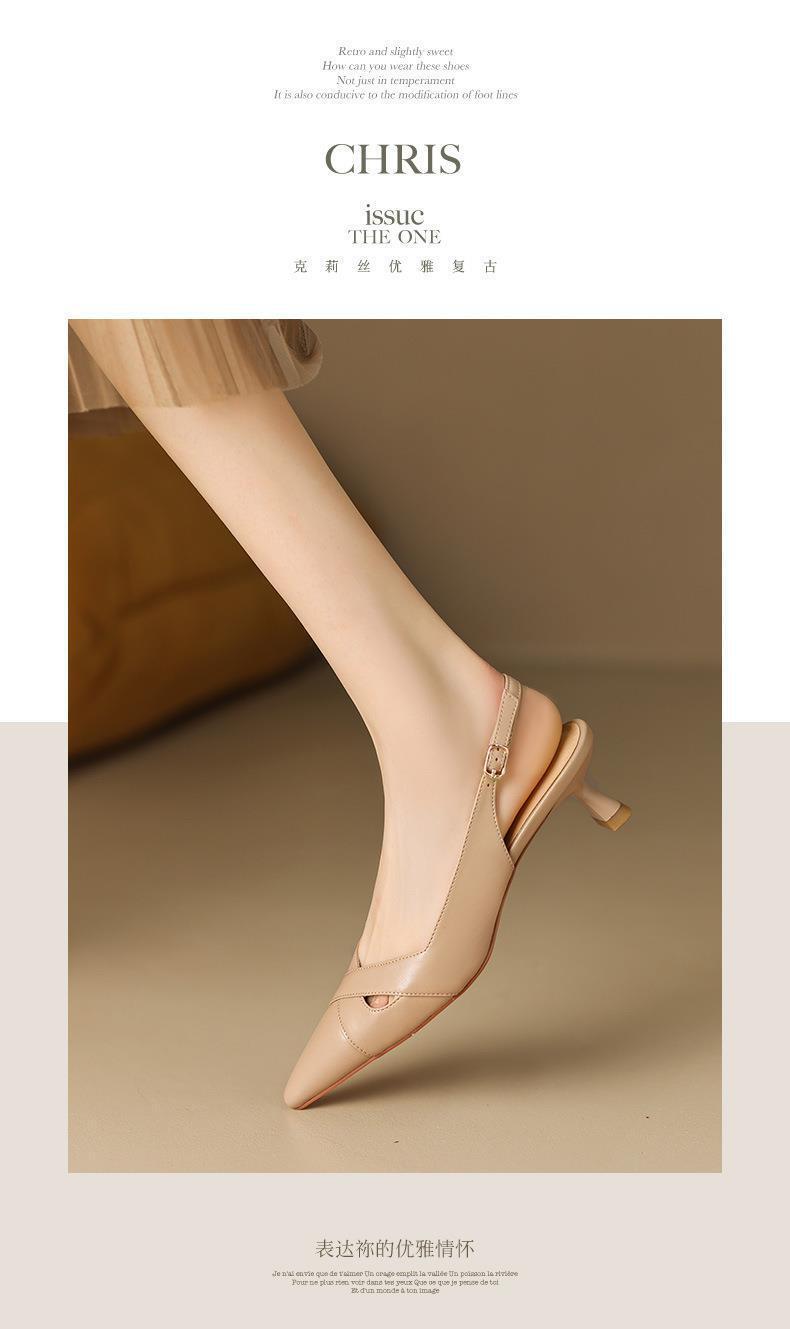 여성용 바오터우 샌들 여름 프랑스 스타일 백 빈 고양이 발 뒤꿈치 지적 발가락 얕은 입 스틸레토 하이힐 여성 신발스토어 가기