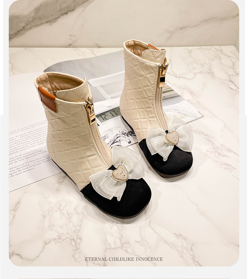 소녀 짧은 부츠 봄과 가을 싱글 부츠 공주 스타일 2024 새로운 어린이 가죽 부츠 마틴 부츠 가을과 겨울 기모 베이비 부츠