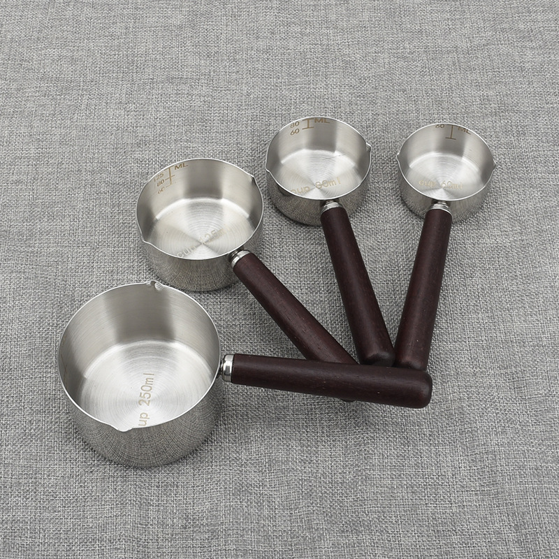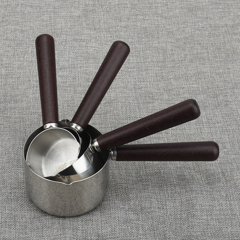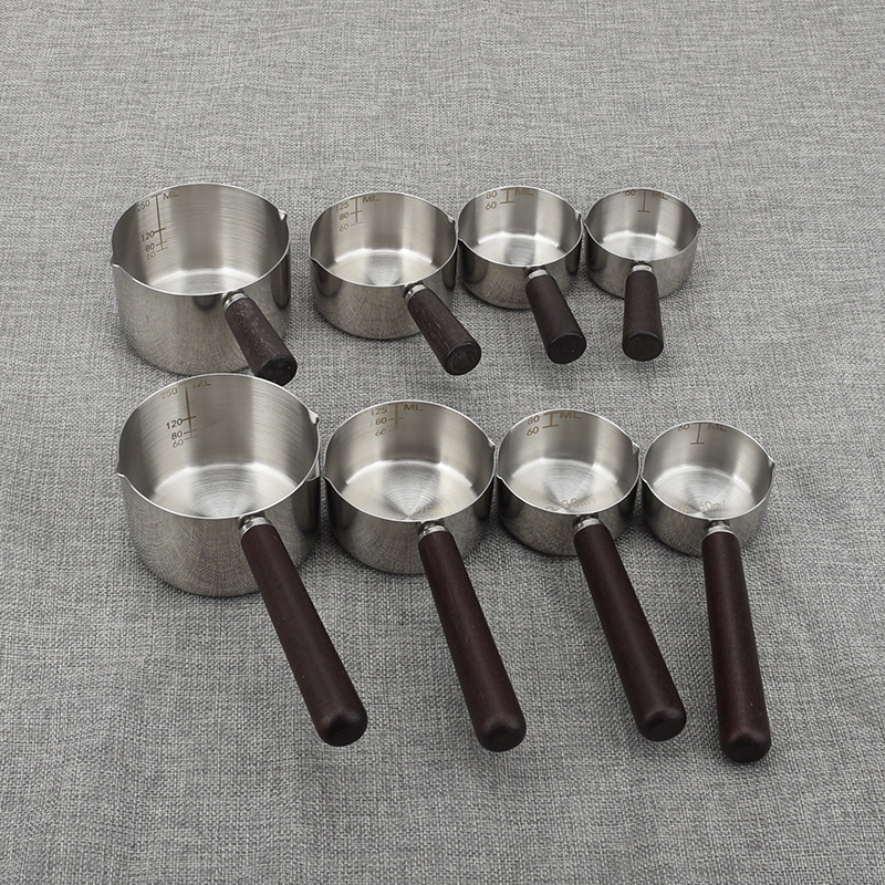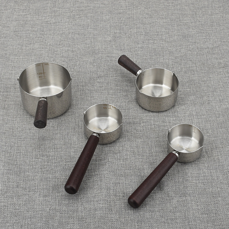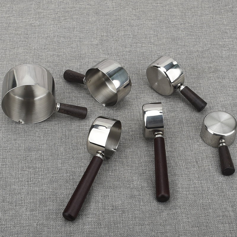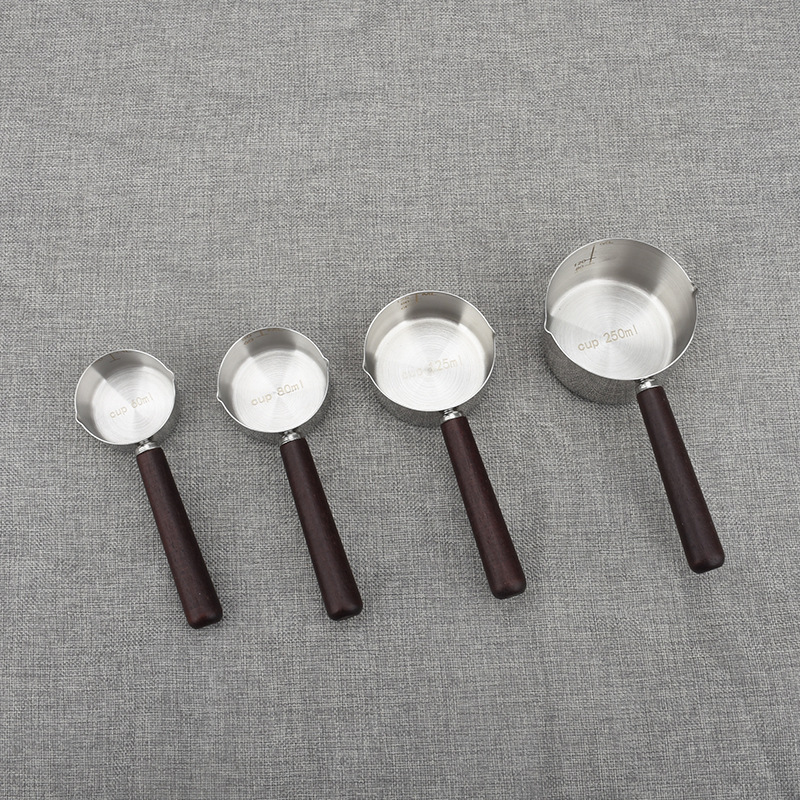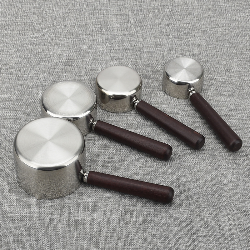 스테인레스 스틸 측정 숟가락 세트 단단한 나무 손잡이 스케일 4 조각 밀가루 분유 커피 단백질 분말 측정 숟가락