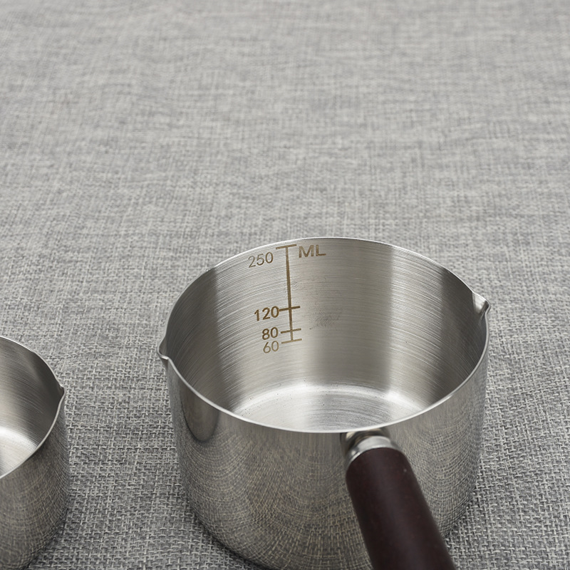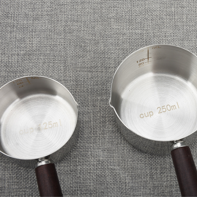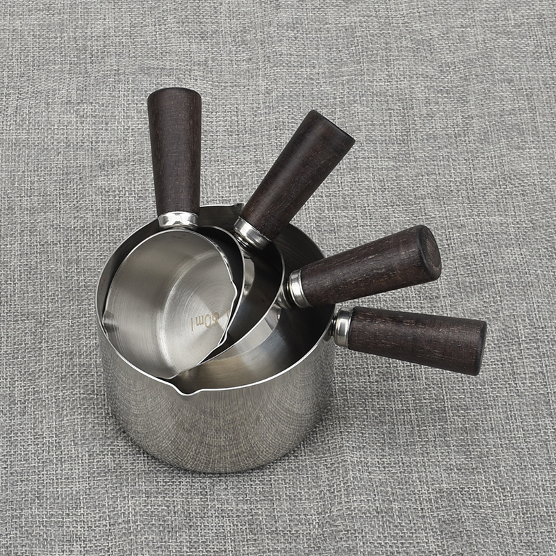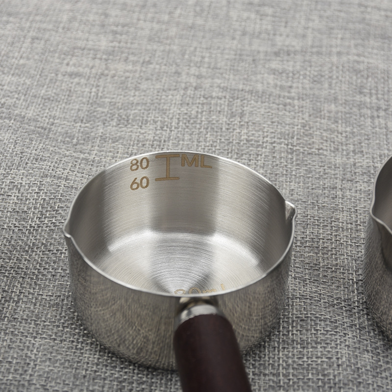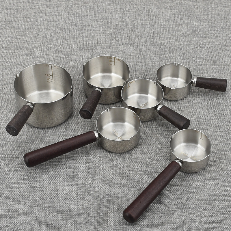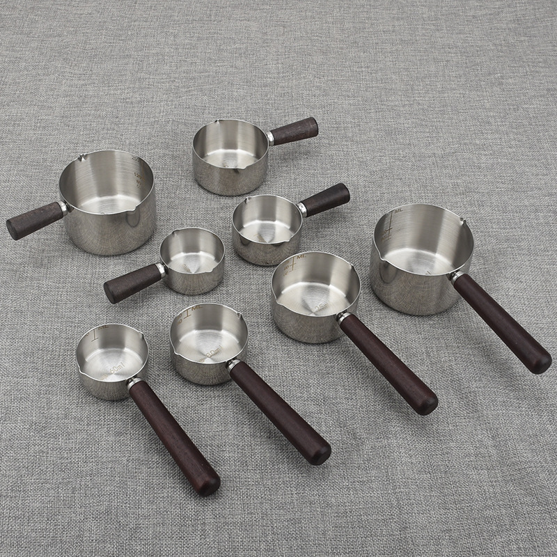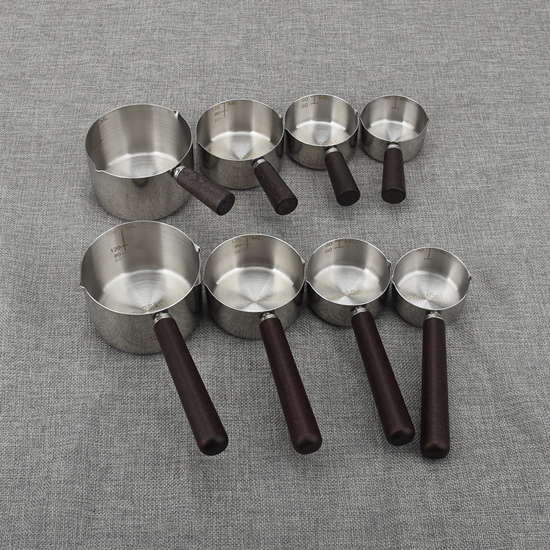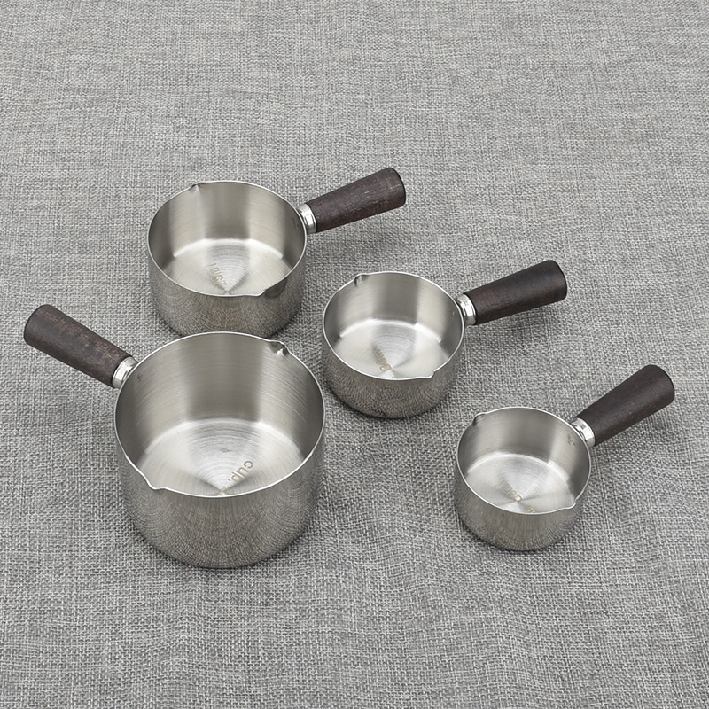 스테인레스 스틸 측정 숟가락 세트 단단한 나무 손잡이 스케일 4 조각 밀가루 분유 커피 단백질 분말 측정 숟가락