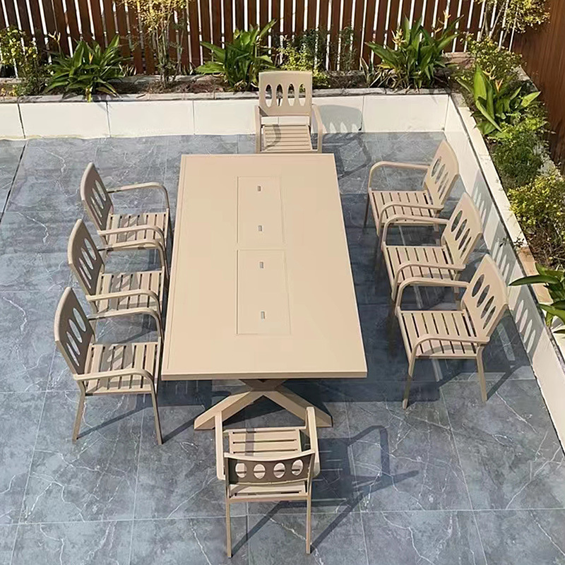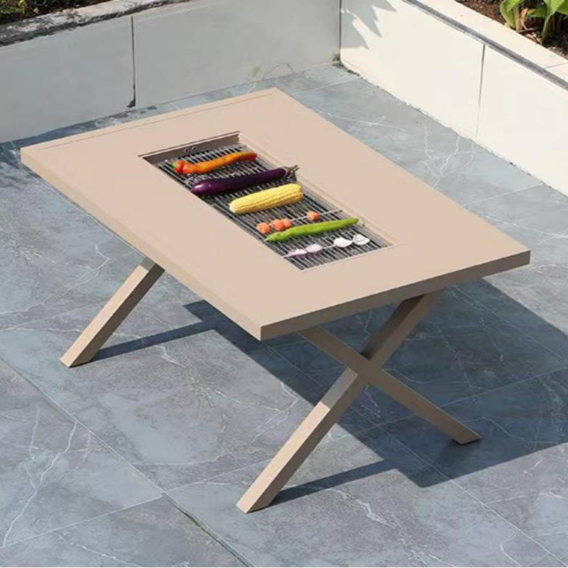 야외 바베큐 테이블과 의자 레저 안뜰 정원 테라스 전기 오븐 야외 가정용 식탁 유럽식 캐스트 알루미늄 가구