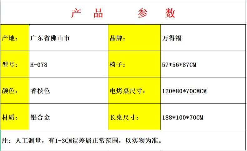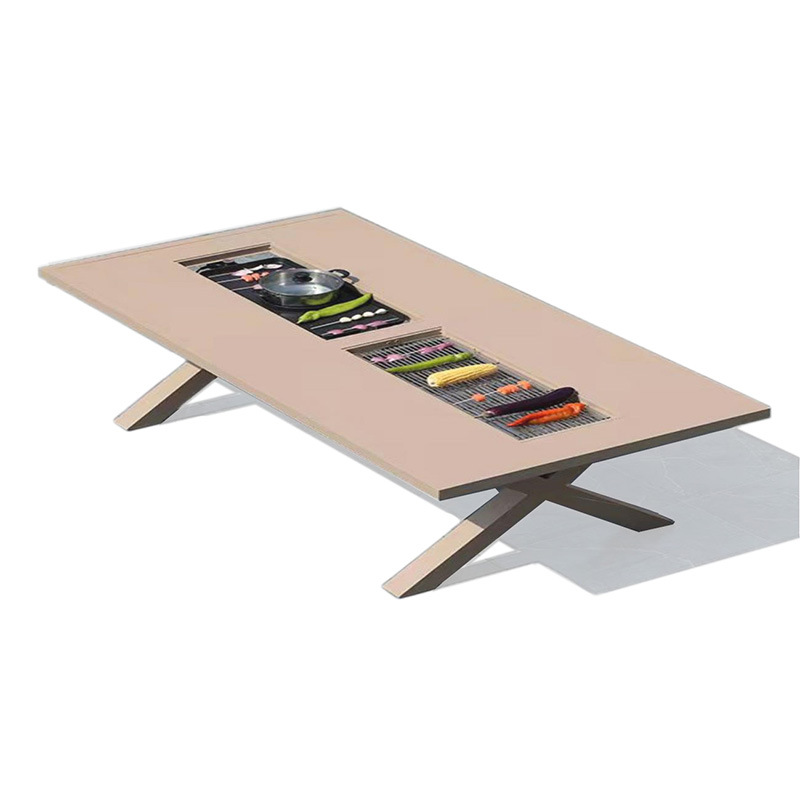 • 단일 샴페인 컬러 이중 스토브 그릴 테이블 3: 188*100*70CM